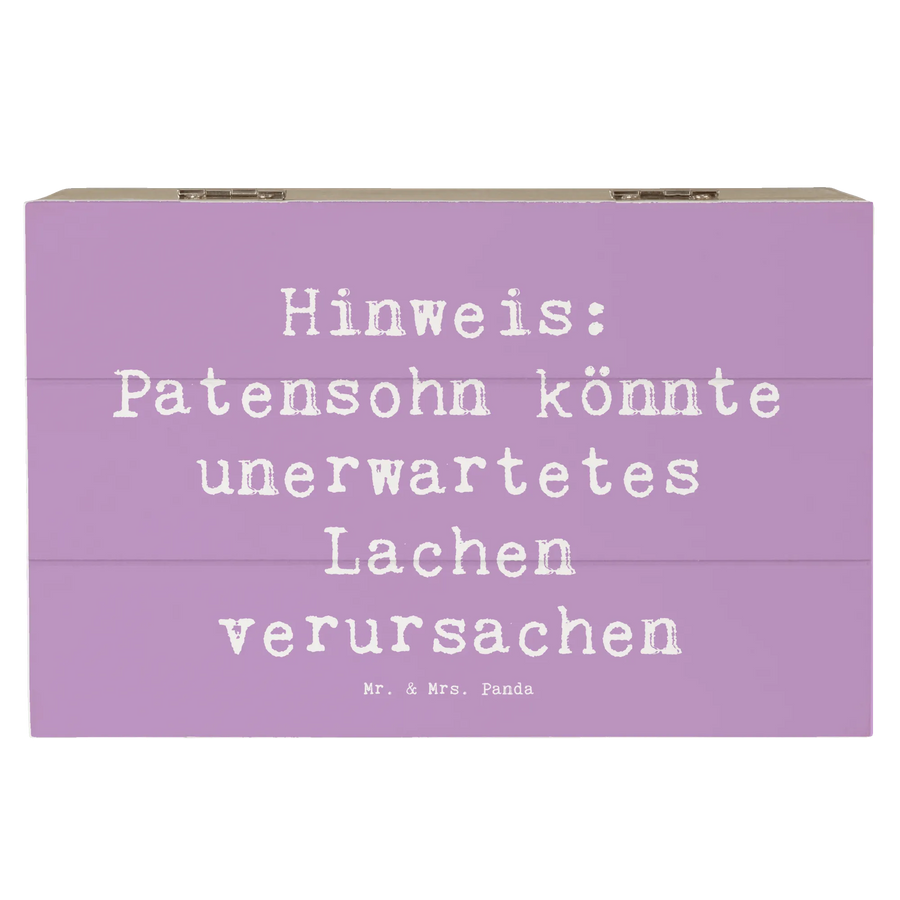 Die wunderschöne Holzkiste von Mr. & Mrs. Panda ist das perfekte Geschenk für deinen Patensohn! 🎁 Mit ihrem zauberhaften Motiv und dem Sticker "Hinweis: Patensohn könnte unerwartetes Lachen verursachen" bringt sie garantiert ein Lächeln auf das Gesicht des Beschenkten.