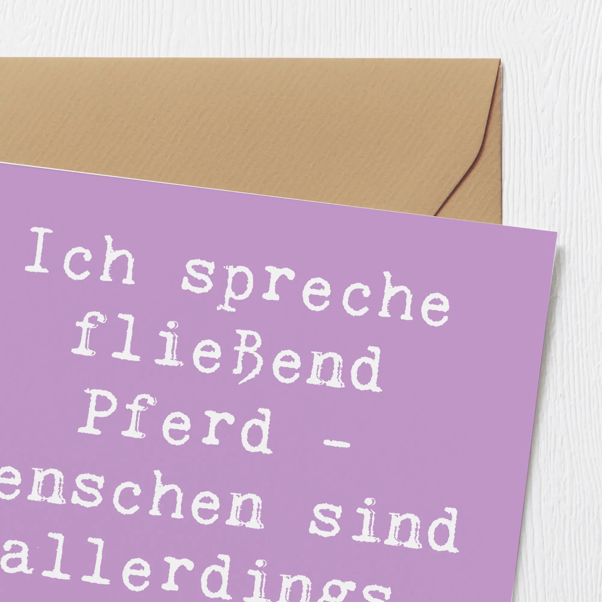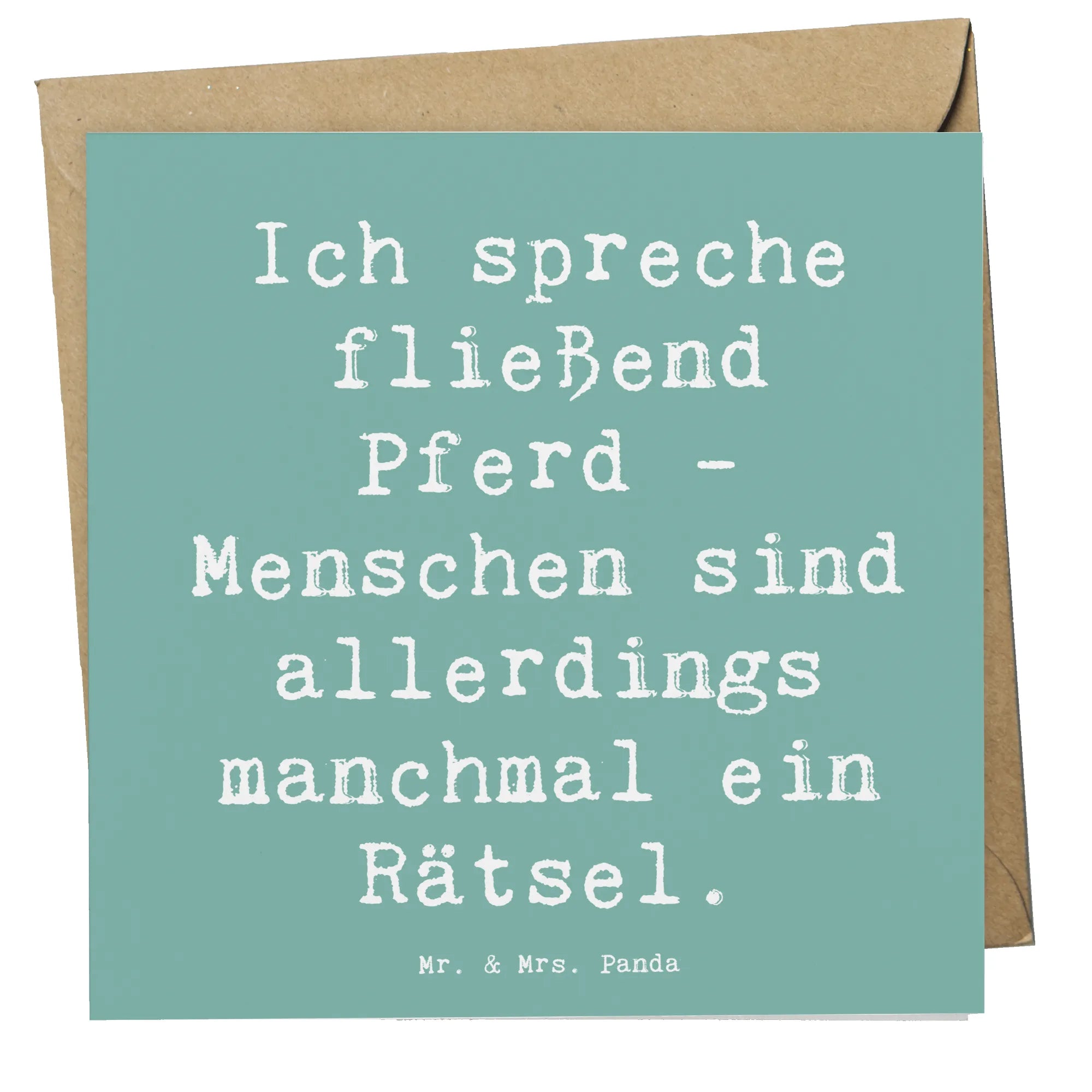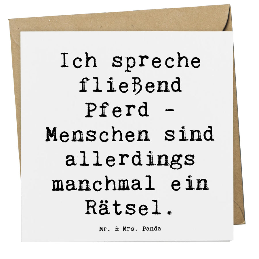 Was macht diese Karte besonders? Das liebevoll gestaltete Motiv mit dem Spruch "Ich spreche fließend Pferd - Menschen sind allerdings manchmal ein Rätsel." ist nicht nur lustig, sondern spricht auch das Herz eines jeden Reiters oder Pferdefreundes an. Es ist ideal für Schwiegermütter, die die Leidenschaft ihrer Kinder für den Reitsport unterstützen, oder für Freunde, die gerne beim Reiten entspannen.