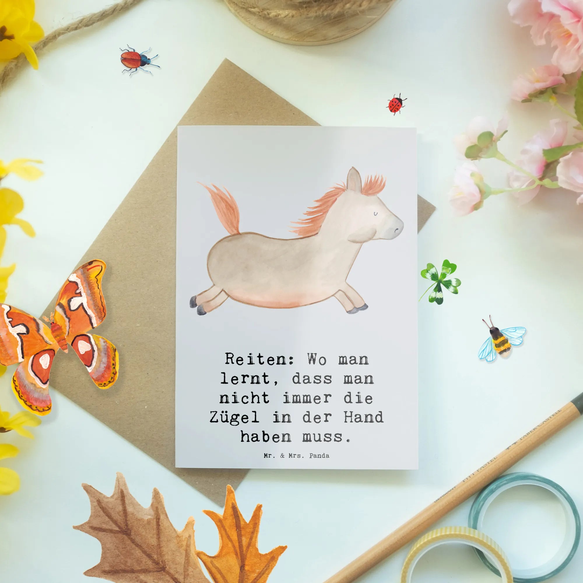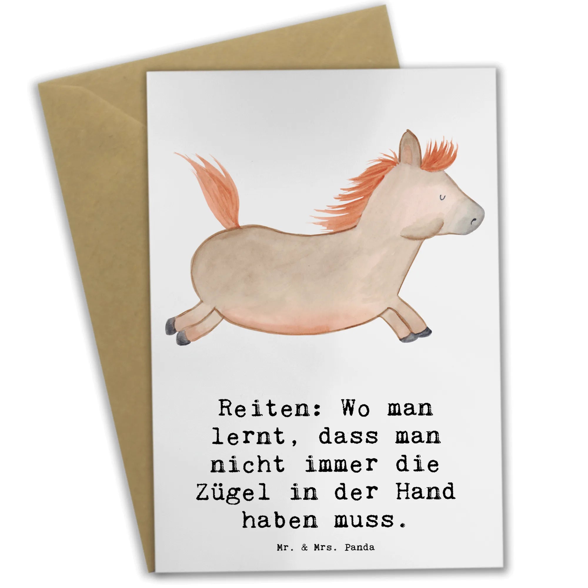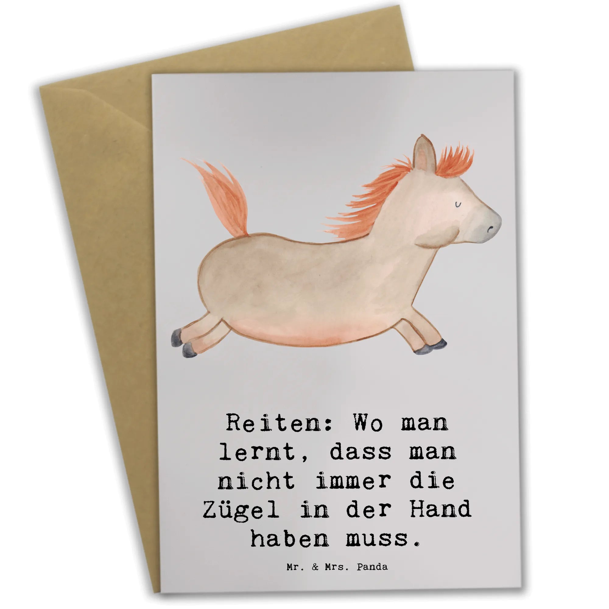 Die Grußkarte von Mr. & Mrs. Panda mit dem einzigartigen Motiv Reiten ist das perfekte Geschenk für alle, die die Leidenschaft für den Reitsport teilen. Egal ob für einen Geburtstag, eine Hochzeit oder einfach so als liebevoller Gruß – diese Karte ist die ideale Wahl.