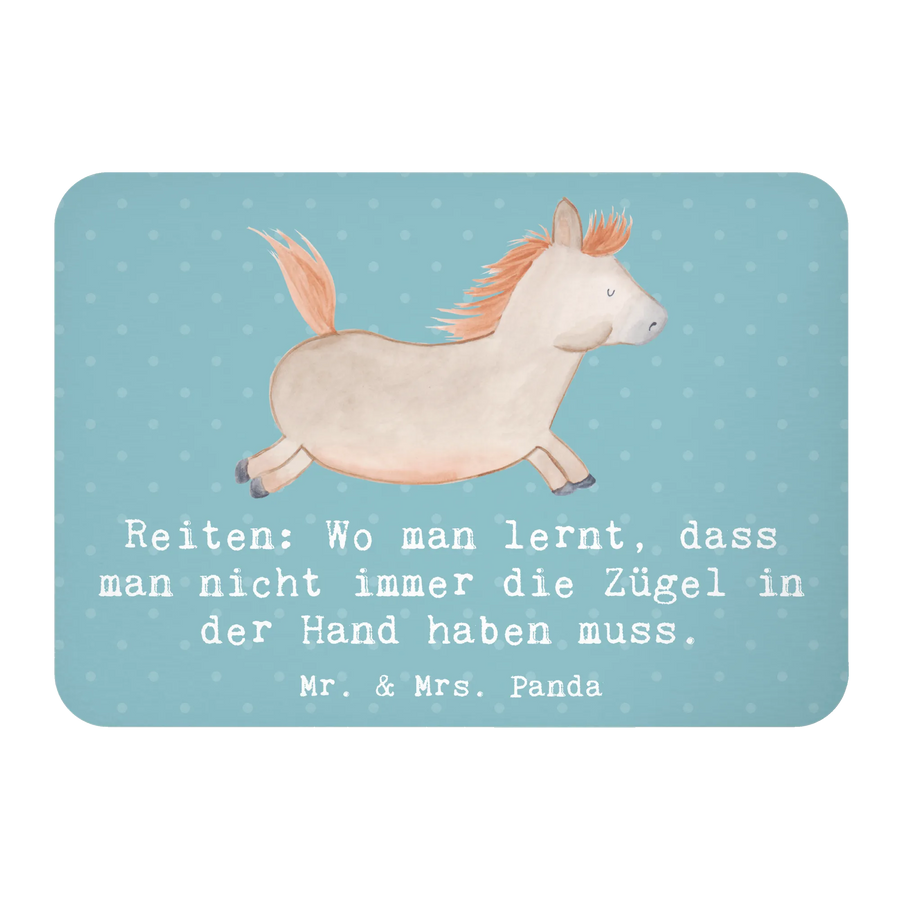 Du bist auf der Suche nach einem ganz besonderen Geschenk für einen Pferdeliebhaber oder Reiter? Dann ist unser Kühlschrankmagnet "Reiten" von Mr. & Mrs. Panda genau das Richtige! Mit dem liebevollen Motiv und dem herzerwärmenden Slogan "Reiten: Wo man lernt, dass man nicht immer die Zügel in der Hand haben muss" wird dieser Magnet zum perfekten Schmuckstück für jeden Kühlschrank oder jede Pinnwand.