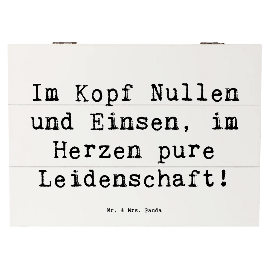 Die Holzkiste mit dem Motive 'Programmierer' von Mr. & Mrs. Panda ist der perfekte Ort, um all deine wertvollen Erinnerungen zu bewahren. Ob Fotos, kleine Andenken oder die ersten Zeichnungen deiner Kinder – diese hochwertige Kiste ist ideal für alles, was dir am Herzen liegt.