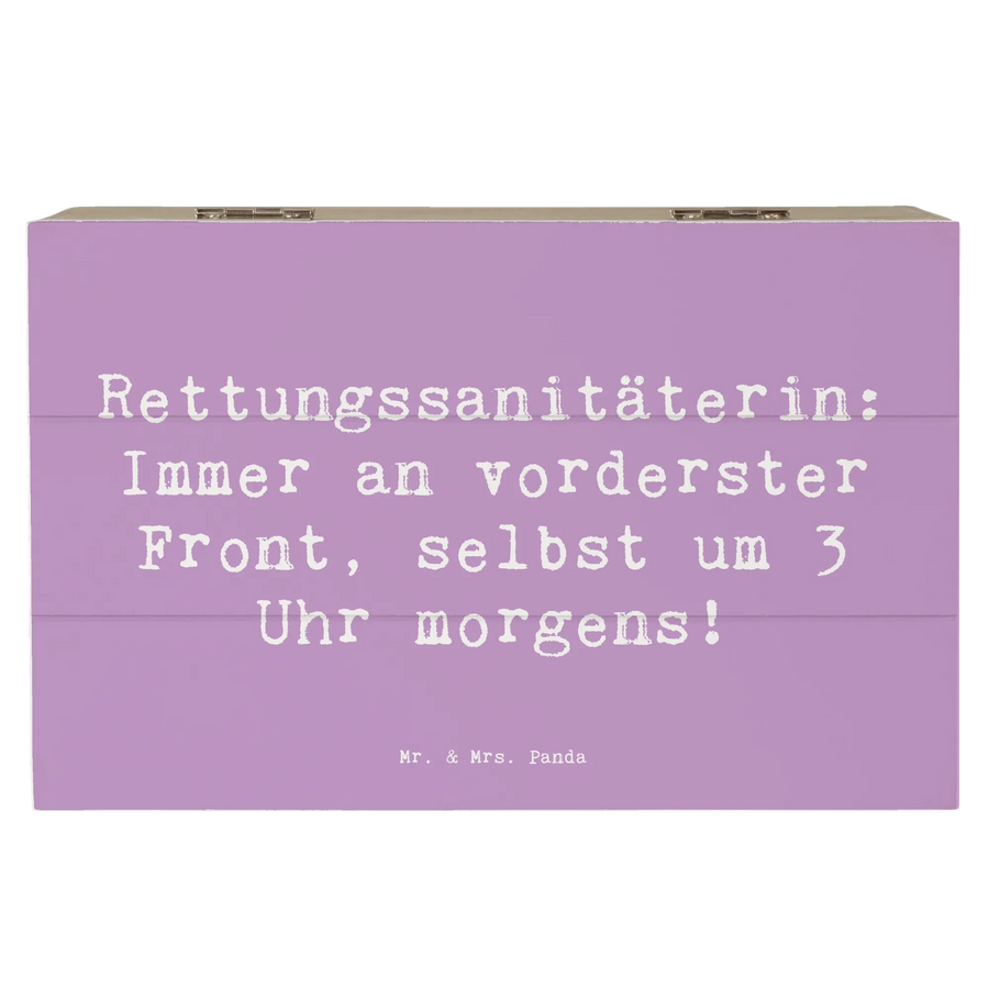 Die wunderschöne Holzkiste von Mr. & Mrs. Panda mit dem Motiv "Rettungssanitäterin: Immer an vorderster Front, selbst um 3 Uhr morgens!" ist das perfekte Geschenk für all jene, die sich in diesem wichtigen Beruf engagieren.