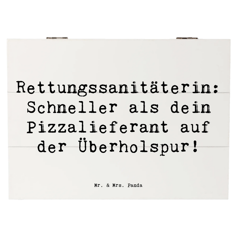 Die wunderschöne Holzkiste von Mr. & Mrs. Panda ist nicht nur ein praktischer Aufbewahrungsort, sondern auch ein liebevolles Geschenk für alle Rettungssanitäterinnen und Rettungssanitäter in deinem Leben. Mit dem witzigen Slogan "Rettungssanitäterin: Schneller als dein Pizzalieferant auf der Überholspur!" wird diese Kiste zum perfekten Ausdruck für den außergewöhnlichen Job dieser heldenhaften Berufe.