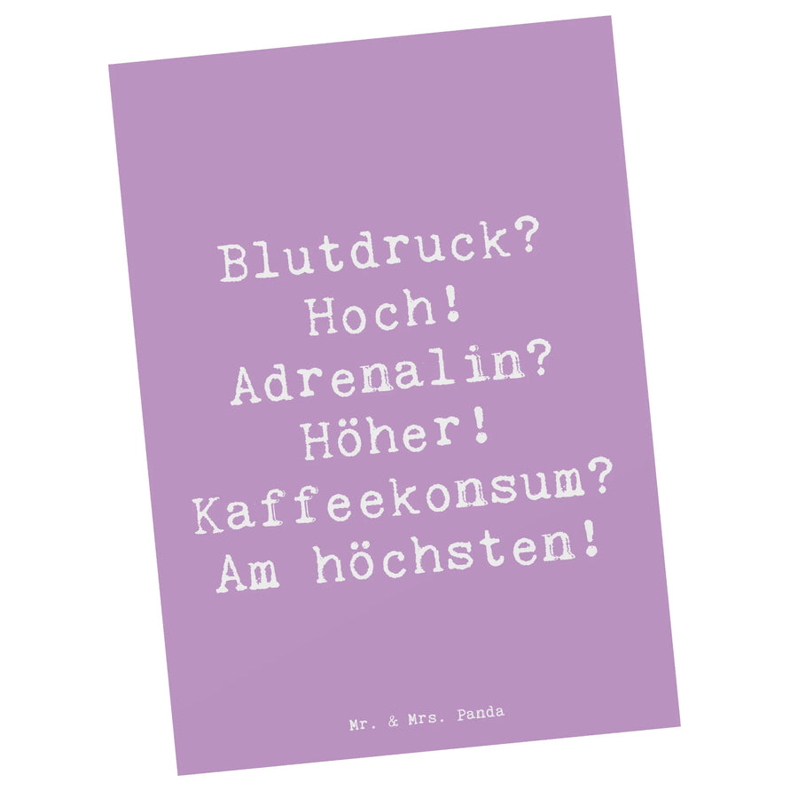 Postkarte Spruch Blutdruck? Hoch! Adrenalin? Höher! Kaffeekonsum? Am höchsten! - Lavendeltraum