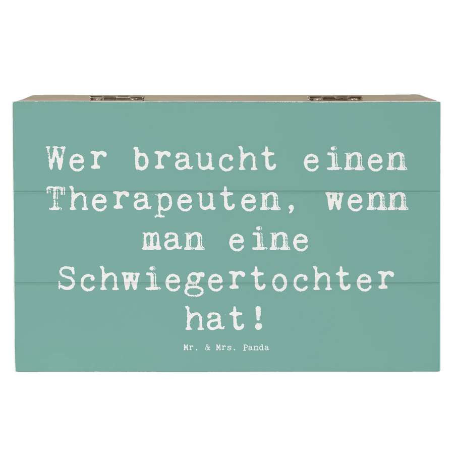 Die wunderschöne Holzkiste von Mr. & Mrs. Panda ist das perfekte Geschenk für Deine Schwiegertochter! Mit dem charmanten Spruch "Wer braucht einen Therapeuten, wenn man eine Schwiegertochter hat!" wird sie nicht nur zu einem praktischen Aufbewahrungsort für all die kleinen und großen Schätze des Lebens, sondern auch zu einem liebevollen Ausdruck Deiner Wertschätzung.