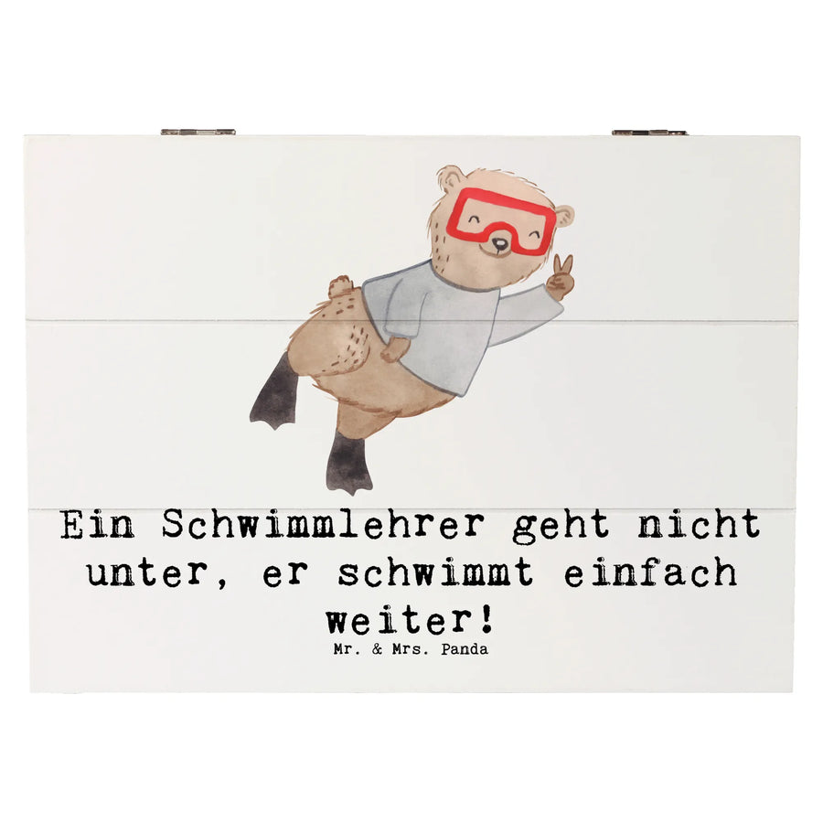 Eine liebevolle Holzkiste von Mr. & Mrs. Panda – perfekt für alle, die einem Schwimmlehrer ein persönliches Geschenk machen möchten. Auf der Box prangt der fröhliche Spruch: „Ein Schwimmlehrer geht nicht unter, er schwimmt einfach weiter!“ und macht diese Aufbewahrungsbox zu einem besonderen Andenken. 🐼