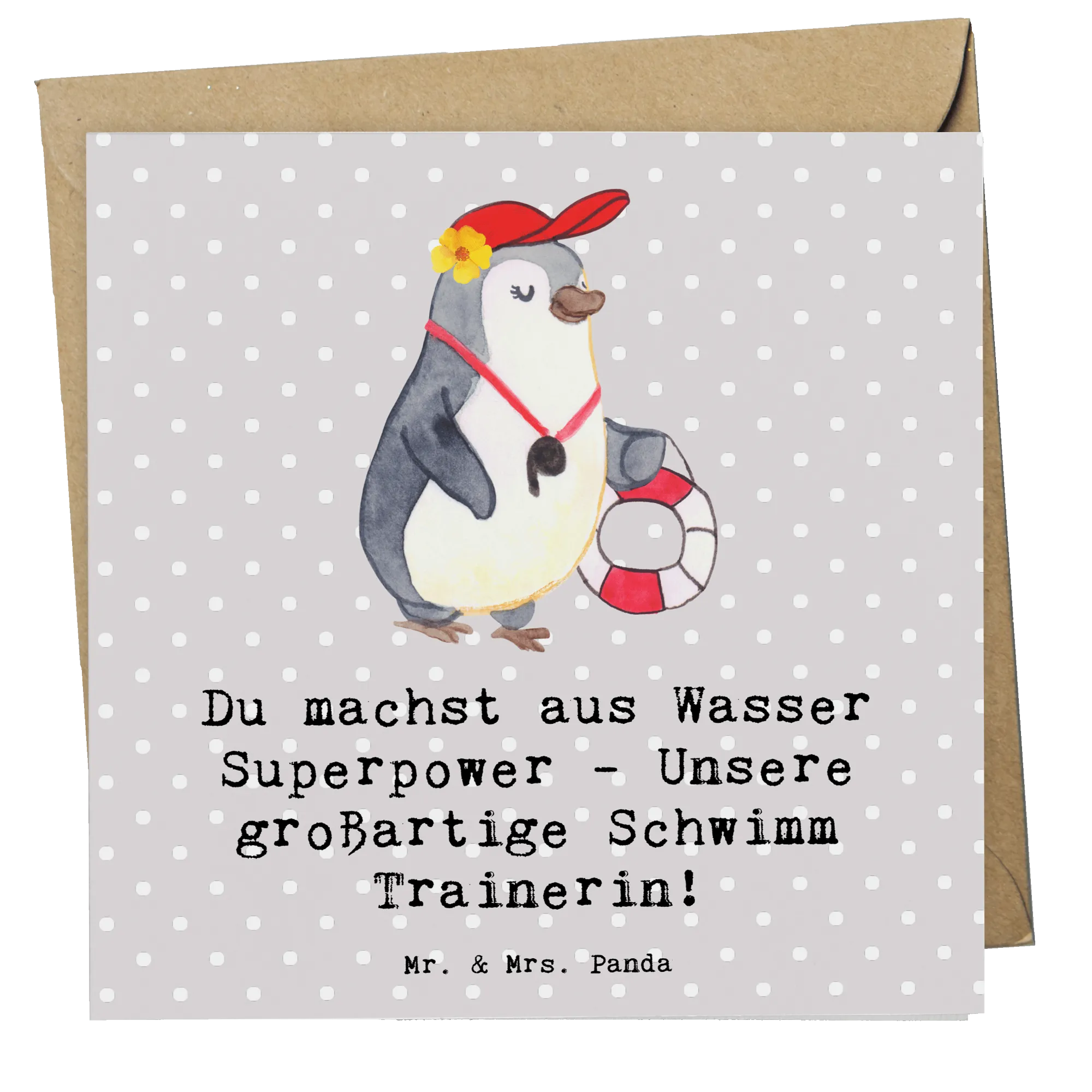 Verpass deiner Schwimmtrainerin ein Stück Wertschätzung mit dieser einzigartigen Deluxe Karte von Mr. & Mrs. Panda – die perfekte Wahl für jede Trainerin und jede Sportart.