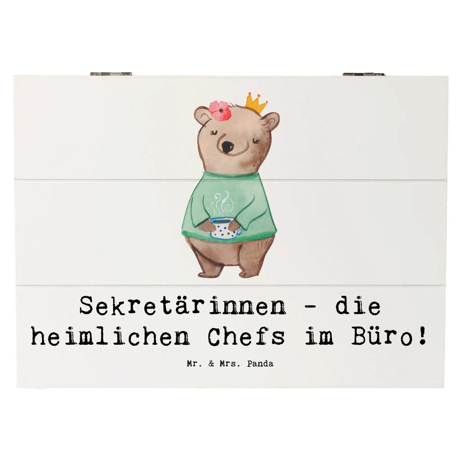 Die wunderschöne Holzkiste mit dem Motiv "Sekretärin - die heimlichen Chefs im Büro!" von Mr. & Mrs. Panda ist das perfekte Geschenk für jeden Bürohelden. Diese einzigartige Kiste aus robuster Holzfaser bietet nicht nur Platz für alle Deine Schätze, sondern bringt auch einen Hauch von Persönlichkeit in jeden Arbeitsplatz.