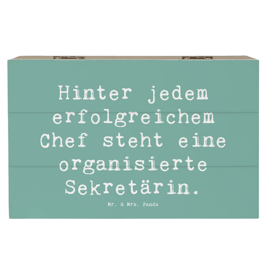 Eine bezaubernde Holzkiste von Mr. & Mrs. Panda, die perfekt für alle Sekretärinnen ist! Diese hochwertige Truhe mit dem liebevollen Slogan "Hinter jedem erfolgreichem Chef steht eine organisierte Sekretärin" ist nicht nur ein praktischer Aufbewahrungsort für Erinnerungen, sondern auch ein stilvolles Dekorationsstück.