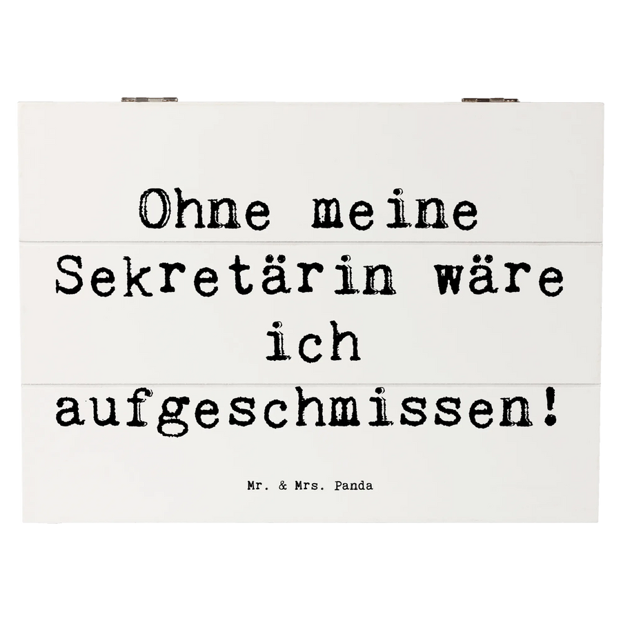 Entdecke die bezaubernde Holzkiste "Sekretärin" von Mr. & Mrs. Panda! Diese wunderschöne Erinnerungskiste ist nicht nur ein praktischer Aufbewahrungsort für Deine wertvollen Schätze, sondern auch ein liebevolles Geschenk für Deine Sekretärin oder für Dich selbst. Mit dem frechen Spruch "Ohne meine Sekretärin wäre ich aufgeschmissen!" zaubert sie jedem ein Lächeln ins Gesicht.