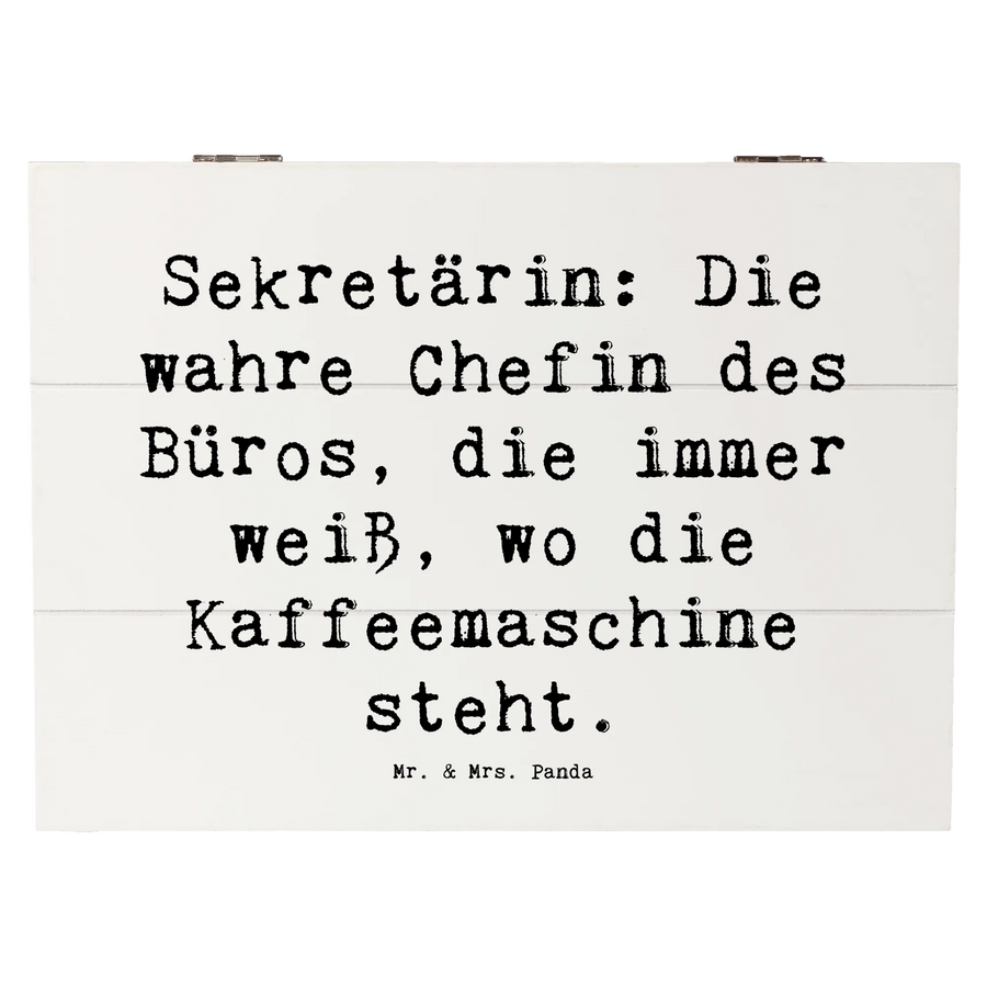 Bist du auf der Suche nach einem ganz besonderen Geschenk für die Sekretärin in deinem Leben? Unsere wunderschöne Holzkiste von Mr. & Mrs. Panda ist das perfekte Accessoire für alle, die im Büro eine wichtige Rolle spielen und damit auch für die unentbehrlichen Sekretärinnen! Diese Erinnerungskiste, bedruckt mit dem liebevollen Spruch "Sekretärin: Die wahre Chefin des Büros, die immer weiß, wo die Kaffeemaschine steht", vereint Funktionalität mit einem charmanten Design.
