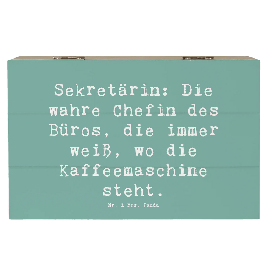 Bist du auf der Suche nach einem ganz besonderen Geschenk für die Sekretärin in deinem Leben? Unsere wunderschöne Holzkiste von Mr. & Mrs. Panda ist das perfekte Accessoire für alle, die im Büro eine wichtige Rolle spielen und damit auch für die unentbehrlichen Sekretärinnen! Diese Erinnerungskiste, bedruckt mit dem liebevollen Spruch "Sekretärin: Die wahre Chefin des Büros, die immer weiß, wo die Kaffeemaschine steht", vereint Funktionalität mit einem charmanten Design.