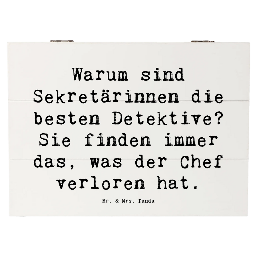 Holzkiste Spruch Warum sind Sekretärinnen die besten Detektive? Sie finden immer das, was der Chef verloren hat. - 25 x 18 cm - Weiß