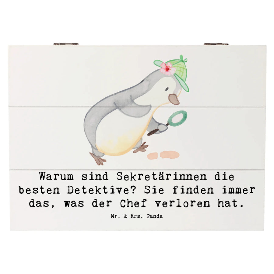 Entdecke die zauberhafte Holzkiste Sekretärin von Mr. & Mrs. Panda! Diese wunderschöne Schatzkiste ist nicht nur praktisch, sondern auch ein echtes Design-Highlight. Mit dem liebevoll gestalteten Motiv 'Warum sind Sekretärinnen die besten Detektive? Sie finden immer das, was der Chef verloren hat.' wird sie jeden Arbeitsplatz aufwerten.