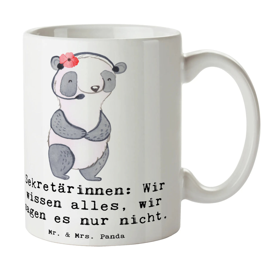 Mr. & Mrs. Panda Tasse „Sekretärin“ – die perfekte Mischung aus Humor, Wertschätzung und praktischem Alltagspartner. Mit dem liebevollen Spruch „Sekretärinnen: Wir wissen alles, wir sagen es nur nicht.“ bringt diese Kaffeetasse den typischen Bürocharme direkt an den Schreibtisch. Die handgezeichnete Illustration von Mrs. Panda in zarten Aquarelltönen macht die Tasse zu einem kleinen Kunstwerk für den Arbeitsplatz. ☕🎨