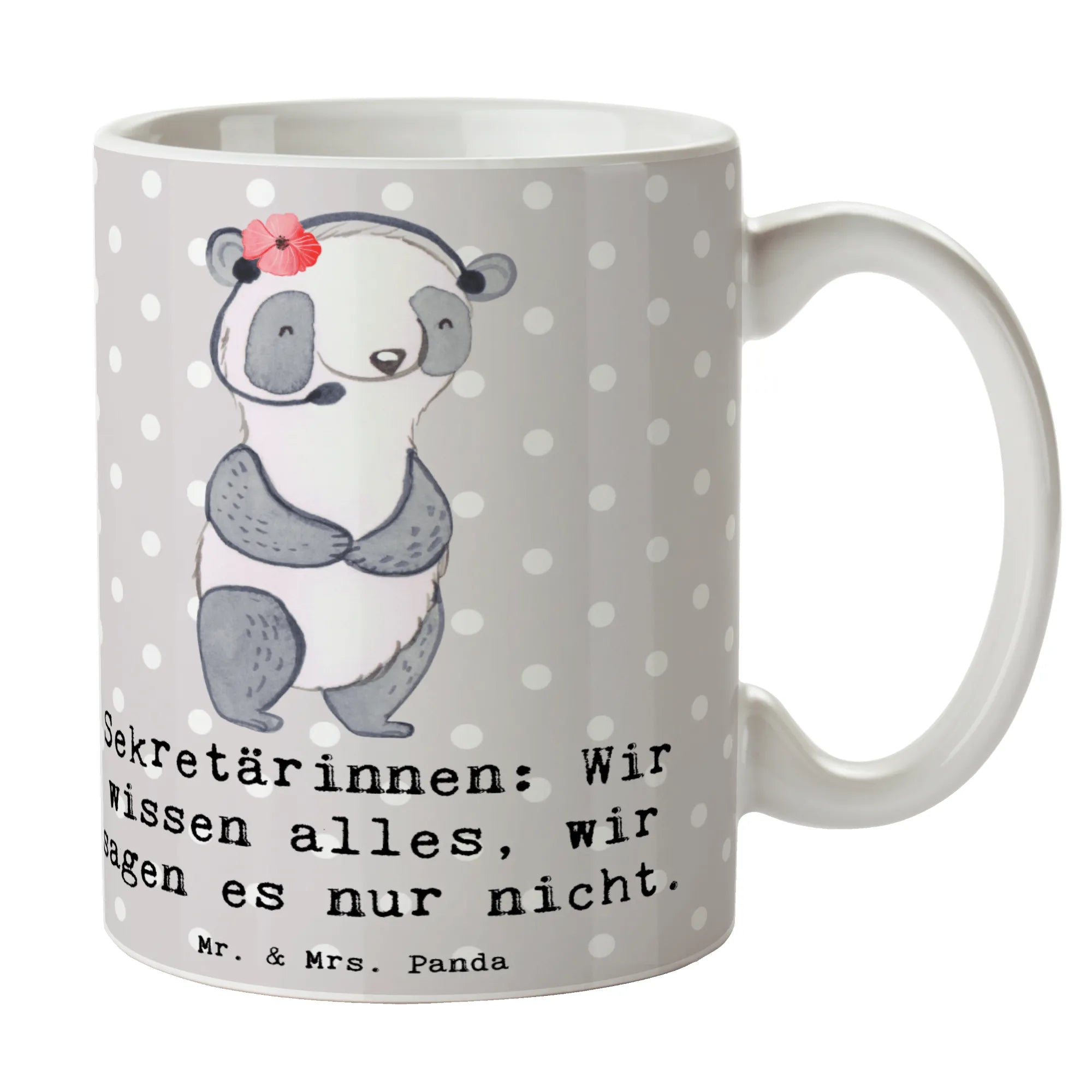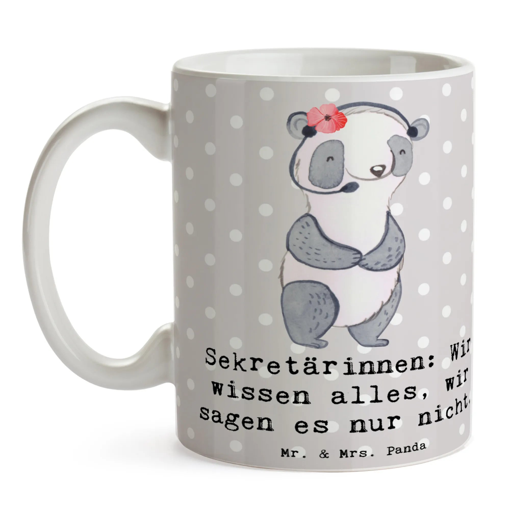 Mr. & Mrs. Panda Tasse „Sekretärin“ – die perfekte Mischung aus Humor, Wertschätzung und praktischem Alltagspartner. Mit dem liebevollen Spruch „Sekretärinnen: Wir wissen alles, wir sagen es nur nicht.“ bringt diese Kaffeetasse den typischen Bürocharme direkt an den Schreibtisch. Die handgezeichnete Illustration von Mrs. Panda in zarten Aquarelltönen macht die Tasse zu einem kleinen Kunstwerk für den Arbeitsplatz. ☕🎨