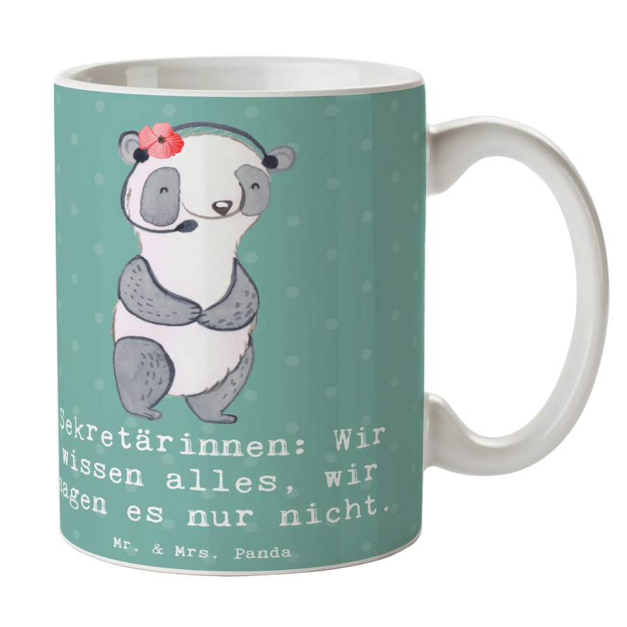 Mr. & Mrs. Panda Tasse „Sekretärin“ – die perfekte Mischung aus Humor, Wertschätzung und praktischem Alltagspartner. Mit dem liebevollen Spruch „Sekretärinnen: Wir wissen alles, wir sagen es nur nicht.“ bringt diese Kaffeetasse den typischen Bürocharme direkt an den Schreibtisch. Die handgezeichnete Illustration von Mrs. Panda in zarten Aquarelltönen macht die Tasse zu einem kleinen Kunstwerk für den Arbeitsplatz. ☕🎨