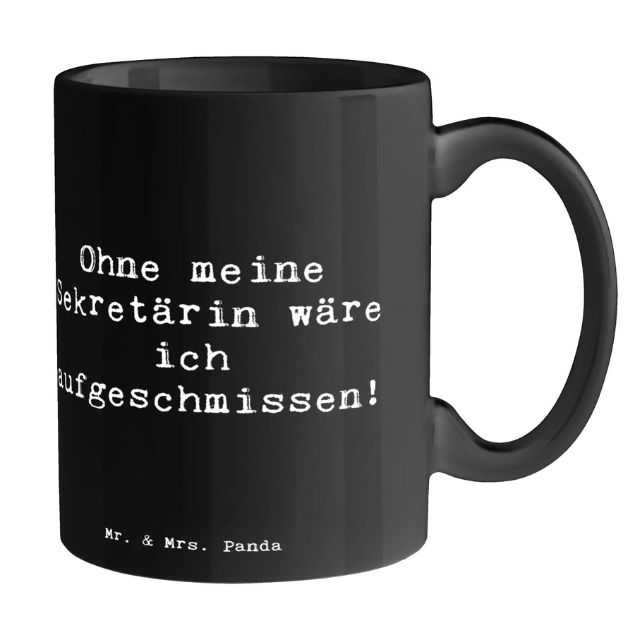 Die perfekte Tasse für die Sekretärin, die alles im Griff hat! Unsere Keramiktasse von Mr. & Mrs. Panda begeistert mit ihrem charmanten Motiv "Ohne meine Sekretärin wäre ich aufgeschmissen!" und ist somit das ideale Geschenk für alle, die in einem Büro arbeiten und einen herzlichen Dank an ihre Sekretärin aussprechen möchten.