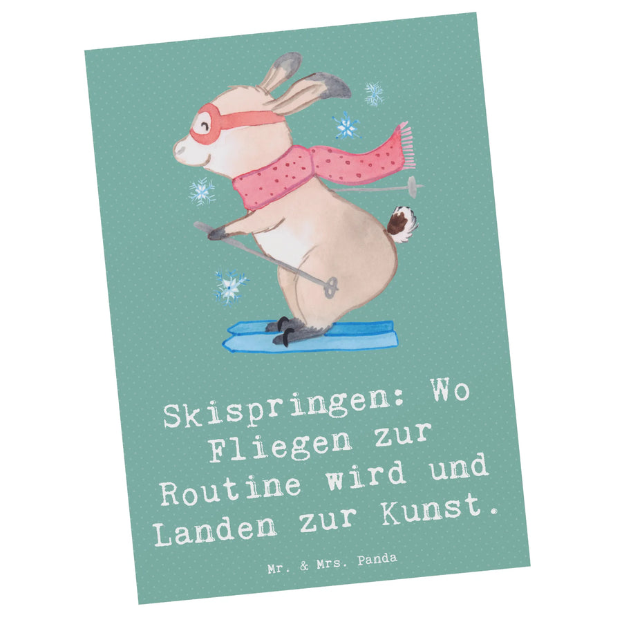 Warte nicht länger! Mach deinen Liebsten eine Freude mit dieser einzigartigen Postkarte von Mr. & Mrs. Panda und lass die Liebe zum Skispringen erstrahlen! Diese Postkarte wird garantiert zum Highlight bei jedem Sport-Event und vermittelt die richtige Botschaft auf eine süße und kreative Art. Perfekt für die nächste Einladung, Geburtstagsfeier oder auch als kleines Dankeschön an einen wertvollen Freund. Diese Karte verbindet Stil mit einem Hauch von Spaß und wird sowohl Junge als auch Alte begeistern! Lass die Leidenschaft für den Sport sprechen und versende diese tolle Postkarte schon bald!