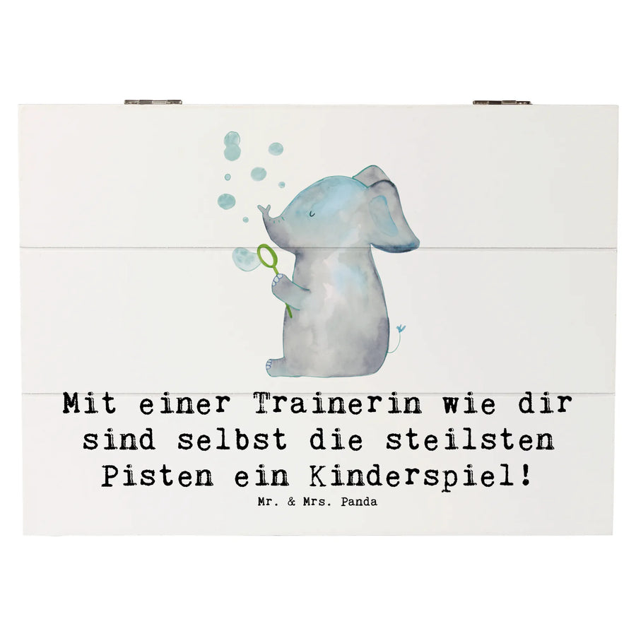 Die Holzkiste Skifahren Trainerin von Mr. & Mrs. Panda ist das perfekte Geschenk für deine Trainerin! Mit dem liebevollen Slogan "Mit einer Trainerin wie dir sind selbst die steilsten Pisten ein Kinderspiel!" zeigt diese Kiste nicht nur deine Anerkennung, sondern bietet gleichzeitig einen wunderbaren Platz für die Erinnerungen und Schätze deiner Trainerin.
