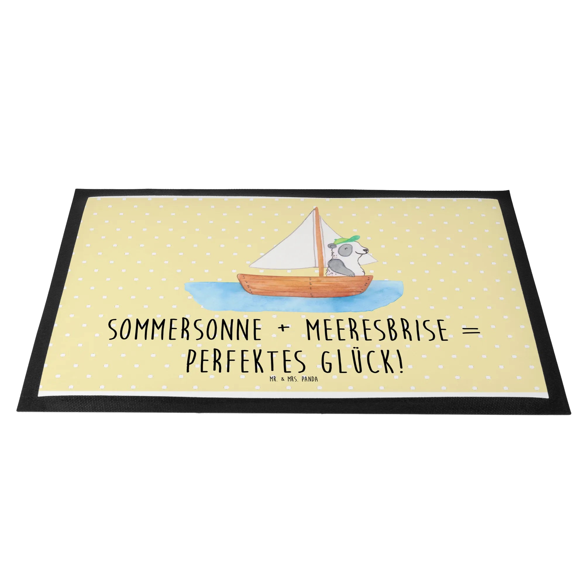 Die Fußmatte Sommer, Meer & Strand von Mr. & Mrs. Panda ist das perfekte Accessoire für alle, die den Sommer und das Urlaubsfeeling lieben! Mit dem spritzigen Spruch "Sommersonne + Meeresbrise = perfektes Glück!" zaubert sie jedem ein Lächeln ins Gesicht, sobald man die Haustür betritt. Diese hochwertige Schmutzmatte ist nicht nur hübsch anzusehen, sondern auch extrem funktional.