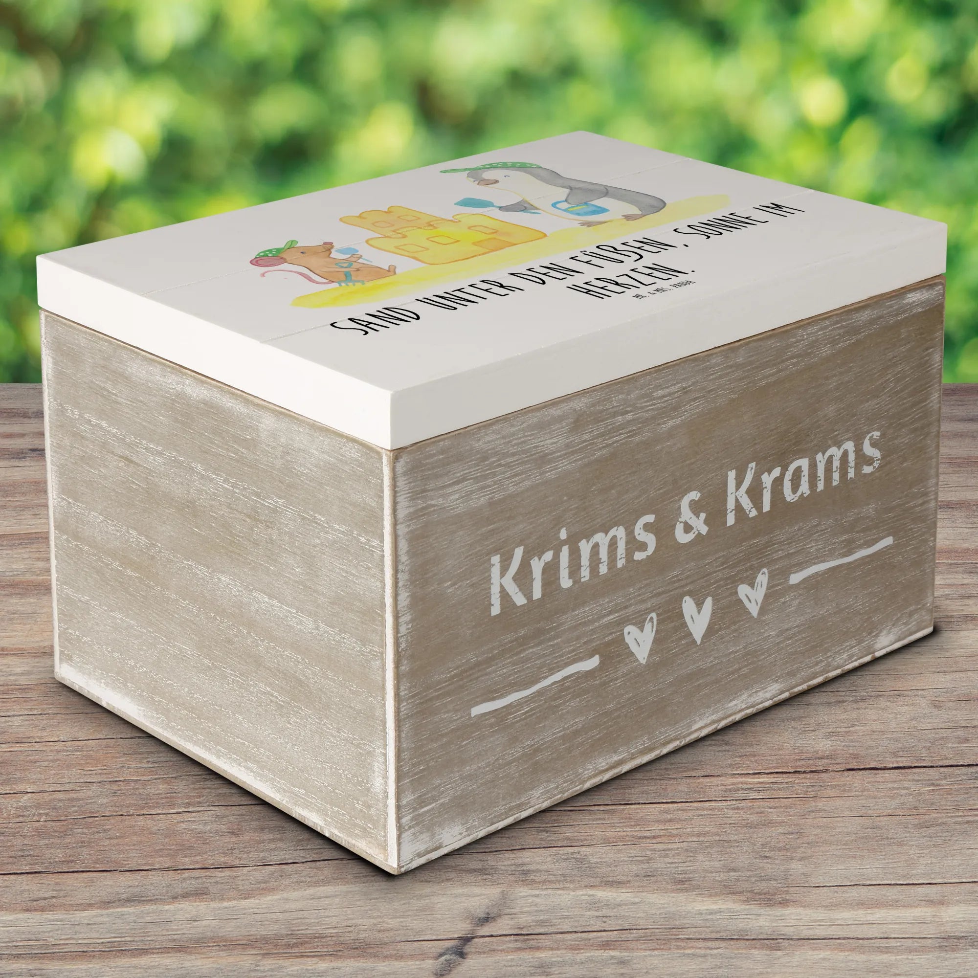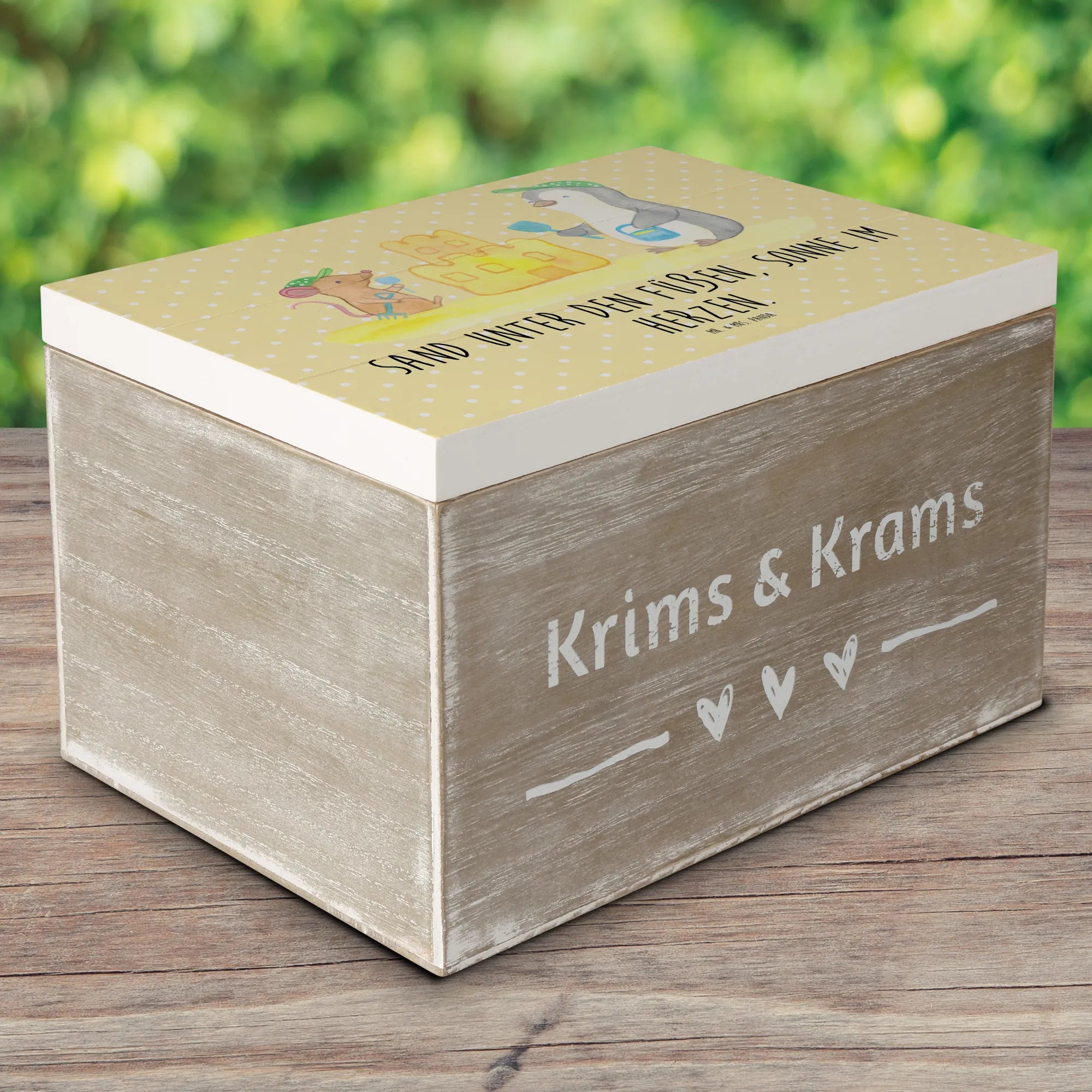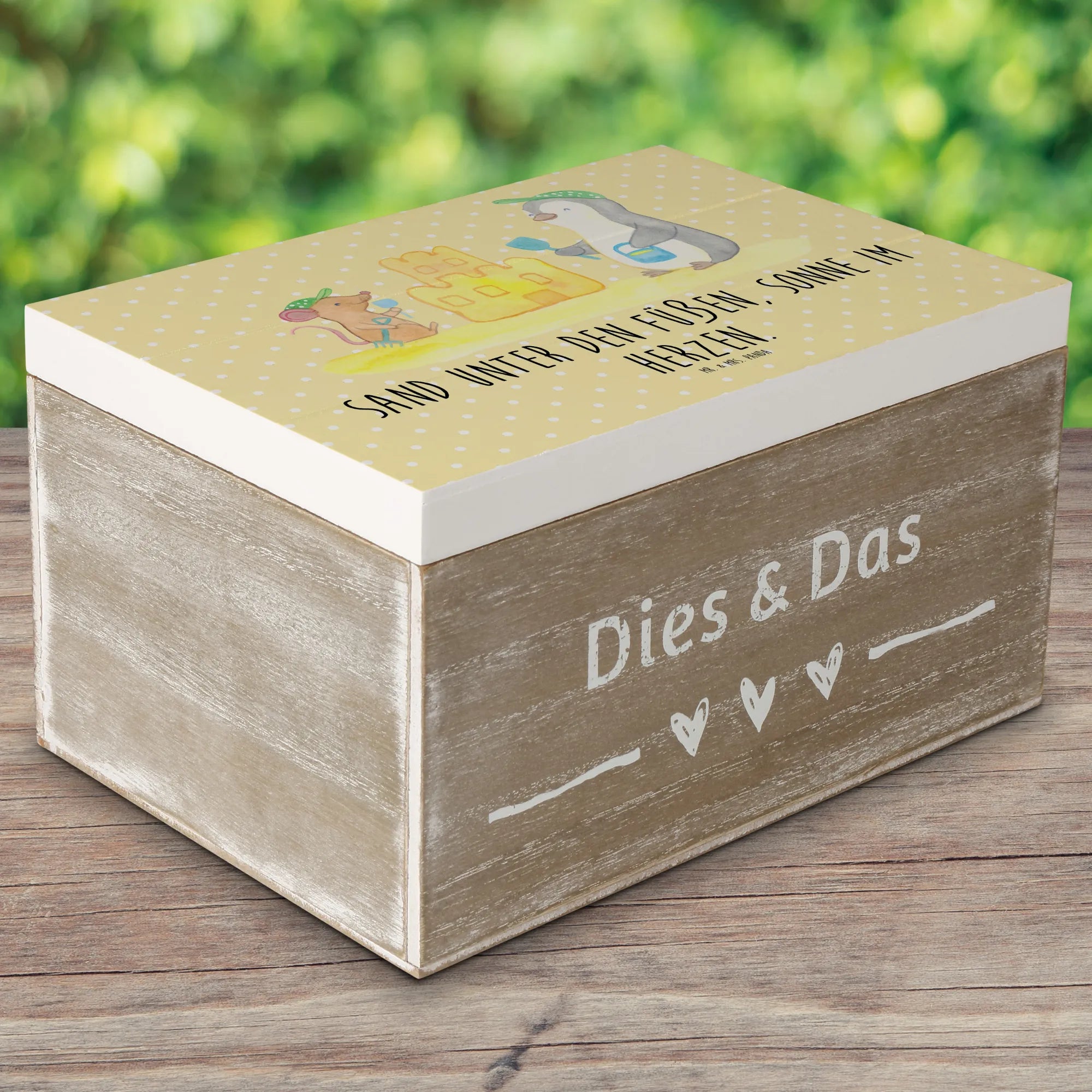 Die wunderschöne Holzkiste von Mr. & Mrs. Panda mit dem zauberhaften Motiv "Sommer, Meer & Strand" ist das perfekte Geschenk für alle, die die sonnigen Tage und unvergesslichen Erinnerungen lieben. Diese Herrlichkeit aus robuster Holzfaser ist nicht nur funktional, sondern auch eine echte Augenweide. Mit ihr kannst Du Deine liebsten Schätze aufbewahren oder besondere Erinnerungen festhalten.