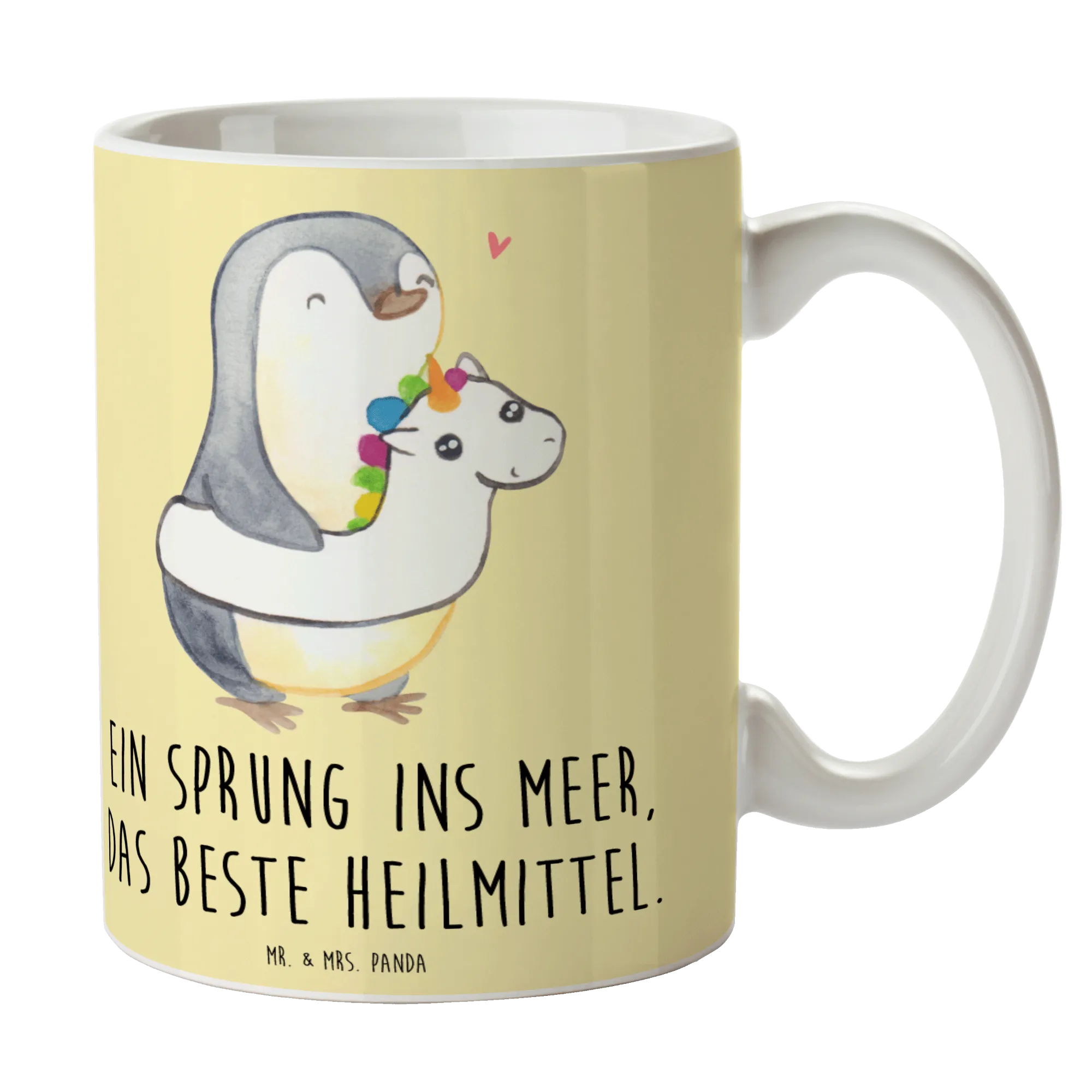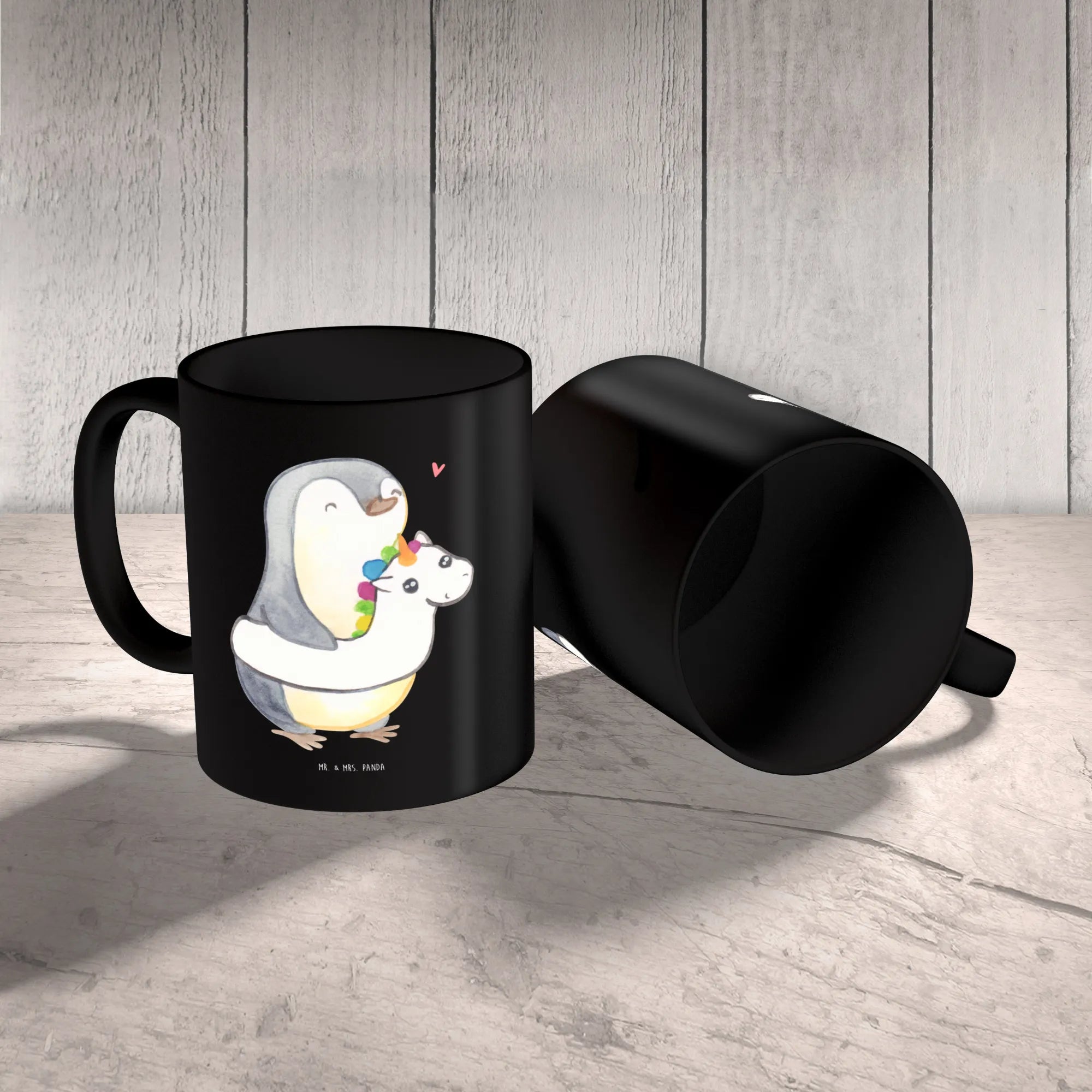 Start in den Tag mit einem Lächeln – die Kaffeetasse von Mr. & Mrs. Panda ist genau das Richtige dafür! Diese wunderschöne Keramiktasse hat die Maße von 90 mm x 90 mm und eine Füllmenge von 325 ml. Dank ihrer hochwertigen Verarbeitung ist sie nicht nur mikrowellengeeignet, sondern auch spülmaschinenfest und übersteht problemlos bis zu 2000 Waschgänge. Mit tollen Sprüchen und außergewöhnlichen Motiven bringt diese Tasse Freude und Farbe in deine Morgenroutine. Egal, ob für eine Tasse Kaffee, Tee oder Kakao – diese Tasse macht jeden Schluck zu einem Genuss. Sei es für dich selbst oder als perfektes Geschenk für Freunde und Familie – mit dieser Tasse kannst du nichts falsch machen!