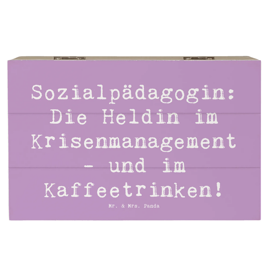 Holzkiste Spruch Sozialpädagogin: Die Heldin im Krisenmanagement - und im Kaffeetrinken! - 19 x 12 cm - Lavendeltraum