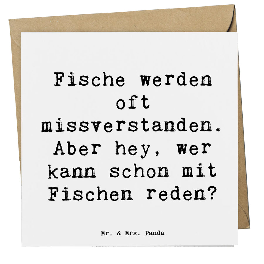 Die Vorderseite zeigt das süße Motiv der Fische mit dem witzigen Spruch: "Fische werden oft missverstanden. Aber hey, wer kann schon mit Fischen reden?" – ein Slogan, der für viele bereits ein Lächeln auf die Lippen zaubert.