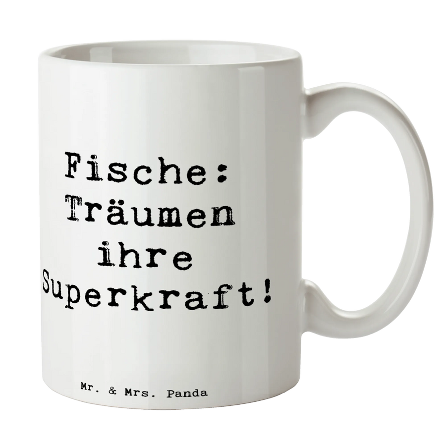Die Tasse Fische aus der bezaubernden Sternzeichen-Kollektion von Mr. & Mrs. Panda ist das perfekte Geschenk für alle, die die Magie der Astrologie lieben! Egal, ob Du ein Fan von Horoskopen bist oder einfach nur jemanden eine Freude machen möchtest, diese wunderschöne Keramik-Tasse bringt ein Lächeln auf jedes Gesicht. Mit einem zauberhaften Motiv der Fische und dem inspirierenden Slogan 'Fische: Träumen ihre Superkraft!' ist diese Tasse eine stimmungsvolle Erinnerung daran, die eigene Fantasie und Kreativität zu leben.