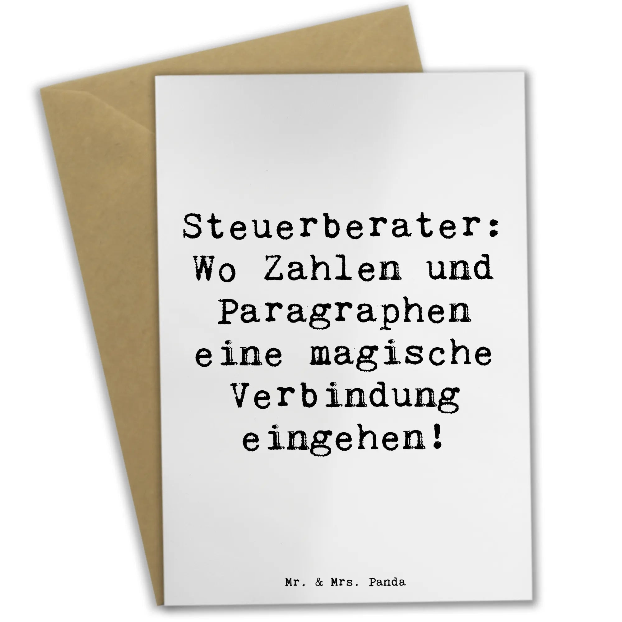 Die Grußkarte "Steuerberater: Wo Zahlen und Paragraphen eine magische Verbindung eingehen!" von Mr. & Mrs. Panda ist das perfekte Geschenk für alle Steuerberater, Buchhalter und Finanzexperten! Ob zum Geburtstag, zur Hochzeit oder einfach nur als kleine Aufmerksamkeit – diese Karte bringt ein Lächeln ins Gesicht.