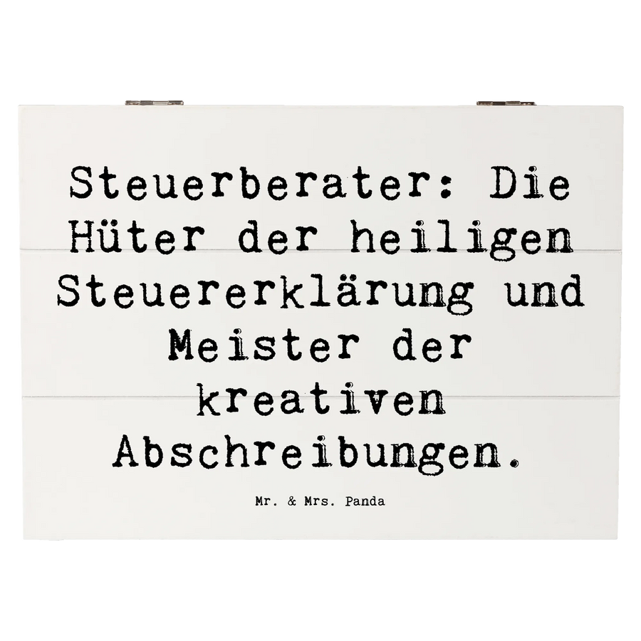 Entdecke die wundervolle Holzkiste von Mr. & Mrs. Panda, die speziell für Steuerberater entworfen wurde! Diese einzigartige Kiste ist nicht nur ein praktischer Aufbewahrungsort für all Deine Erinnerungen, sondern auch ein liebevolles Geschenk für jeden Steuerprofi.