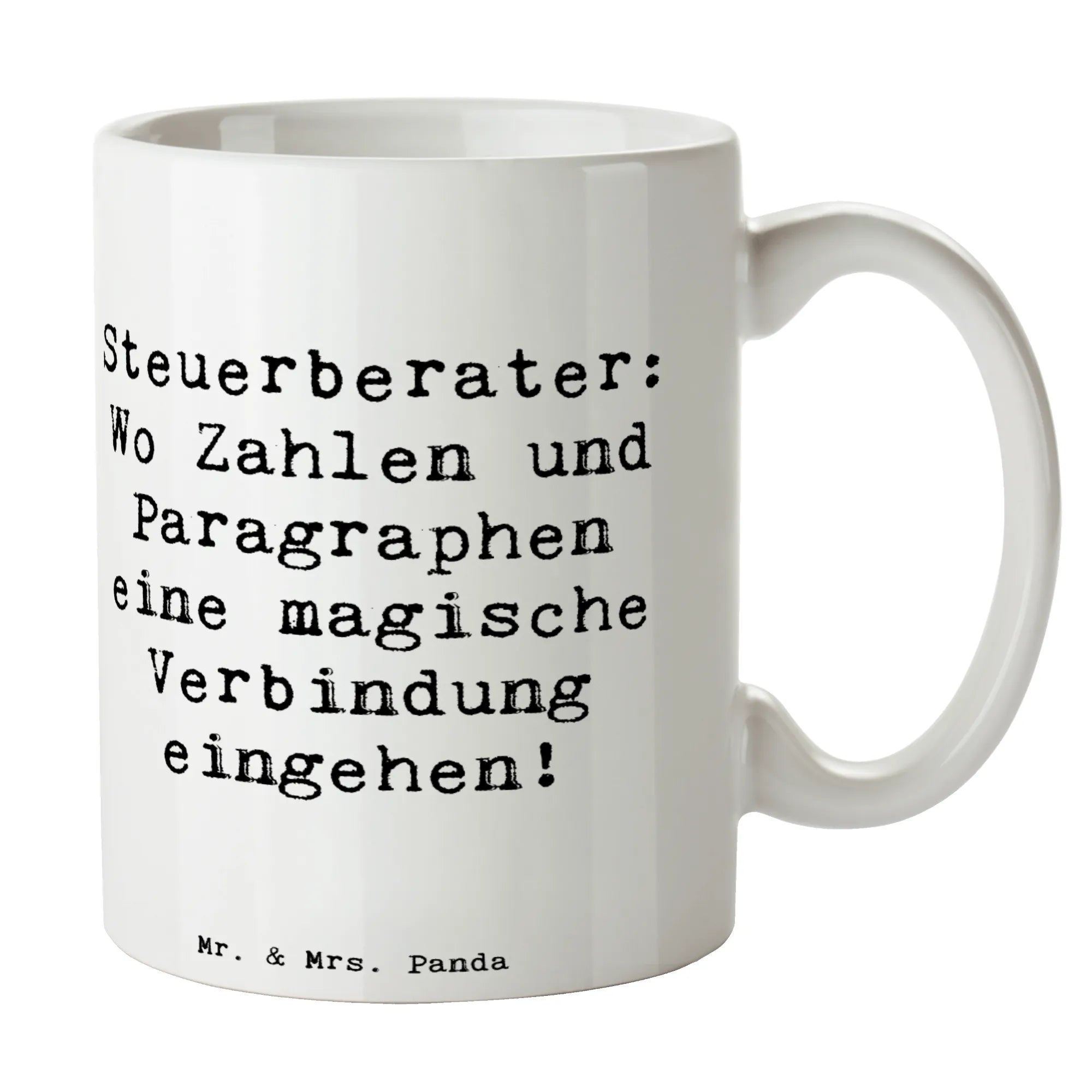 Die Mr. & Mrs. Panda Tasse "Steuerberater: Wo Zahlen und Paragraphen eine magische Verbindung eingehen!" ist das perfekte Geschenk für Steuerberater und alle, die im Bereich Finanzen tätig sind. Diese hochwertig verarbeitete Keramiktasse fasst 325 ml deines Lieblingsgetränks und begleitet dich durch deinen Arbeitstag. Ob im Büro oder zu Hause, diese Tasse ist nicht nur ein praktischer Begleiter, sondern auch ein echter Hingucker mit ihrem liebevollen Design.