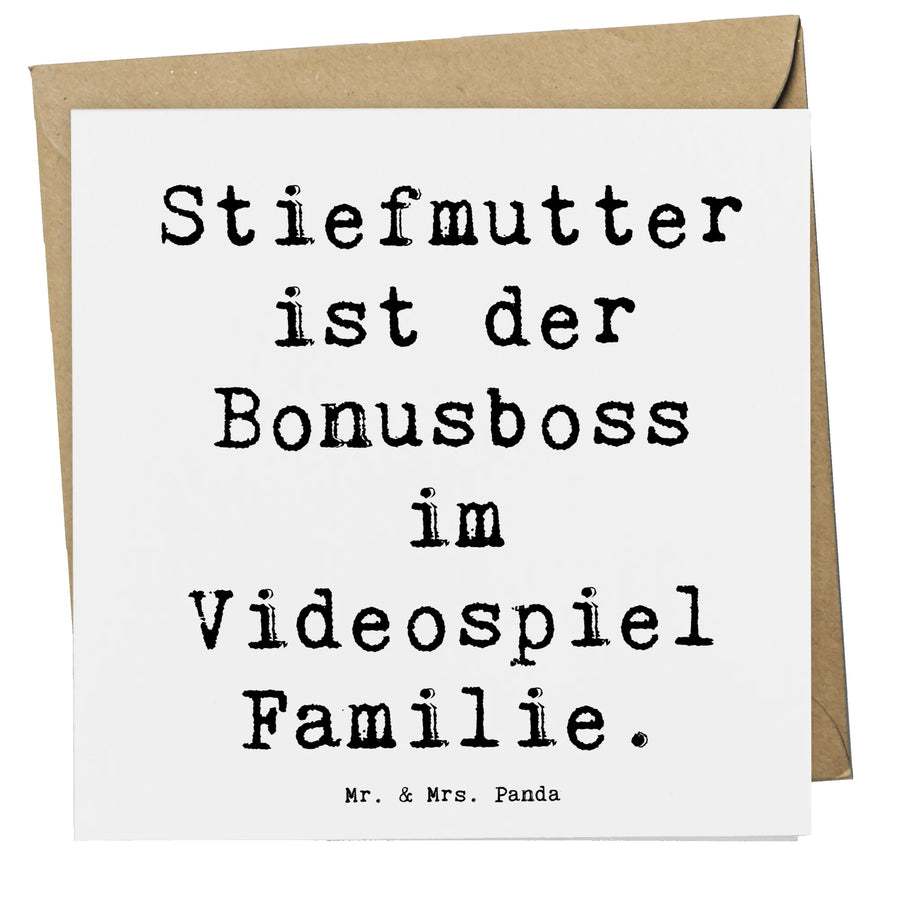 Die Deluxe Karte 'Stiefmutter' von Mr. & Mrs. Panda ist das perfekte Geschenk für all jene, die eine besondere Beziehung zu ihrer Stiefmutter haben. Diese wunderschöne und hochwertige Karte eignet sich hervorragend, um deine Wertschätzung und Dankbarkeit auszudrücken. Der liebevoll gestaltete Spruch 'Stiefmutter ist der Bonusboss im Videospiel Familie' sorgt dafür, dass deine emotionale Botschaft einzigartig und unvergesslich wird. Stell dir vor, wie sehr sich deine Stiefmutter freuen wird, wenn sie diese schöne Karte erhält! 🎉