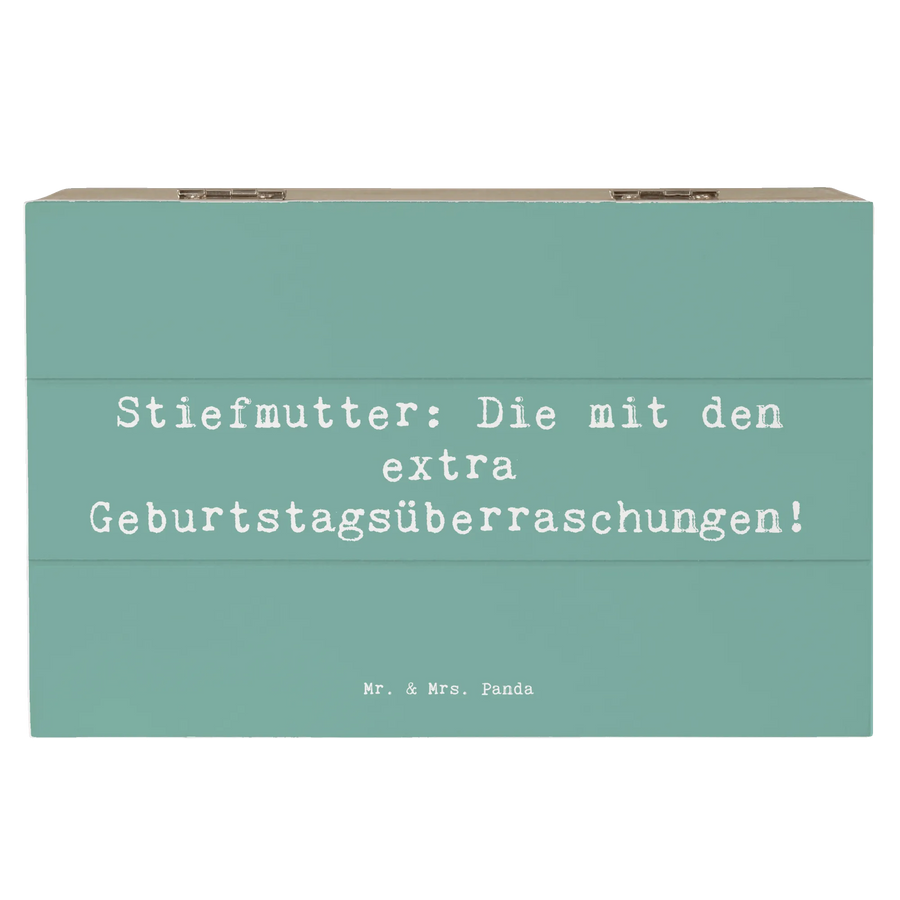 Die Holzkiste "Stiefmutter: Die mit den extra Geburtstagsüberraschungen!" von Mr. & Mrs. Panda ist das ideale Geschenk für alle, die in einer Patchwork-Familie leben oder diese schätzen. Die Kiste aus robuster Holzfaser ist nicht nur ein stilvoller Aufbewahrungsort für die schönsten Erinnerungen, sondern auch ein liebevolles Geschenk zum Geburtstag, zu besonderen Anlässen oder einfach so, um ganz klar zu zeigen, wie sehr du deine Stiefmutter schätzt.