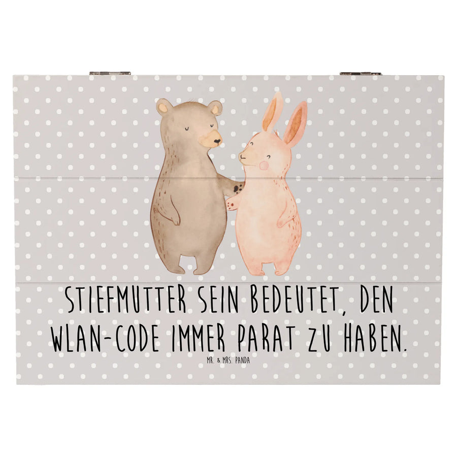 Die wunderschöne Holzkiste von Mr. & Mrs. Panda ist das perfekte Geschenk für deine Stiefmutter oder als liebevolle Aufbewahrung für dein Stiefkind! Mit dem liebevollen Motiv "Stiefmutter sein bedeutet, den WLAN-Code immer parat zu haben." wird sie nicht nur zum Blickfang im Wohnzimmer, sondern ist auch ein Zeichen großer Wertschätzung.