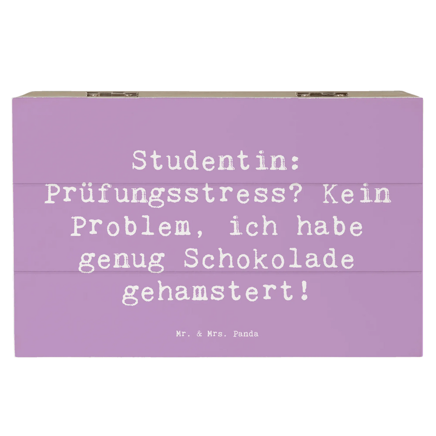 Holzkiste Spruch Studentin: Prüfungsstress? Kein Problem, ich habe genug Schokolade gehamstert! - 19 x 12 cm - Lavendeltraum