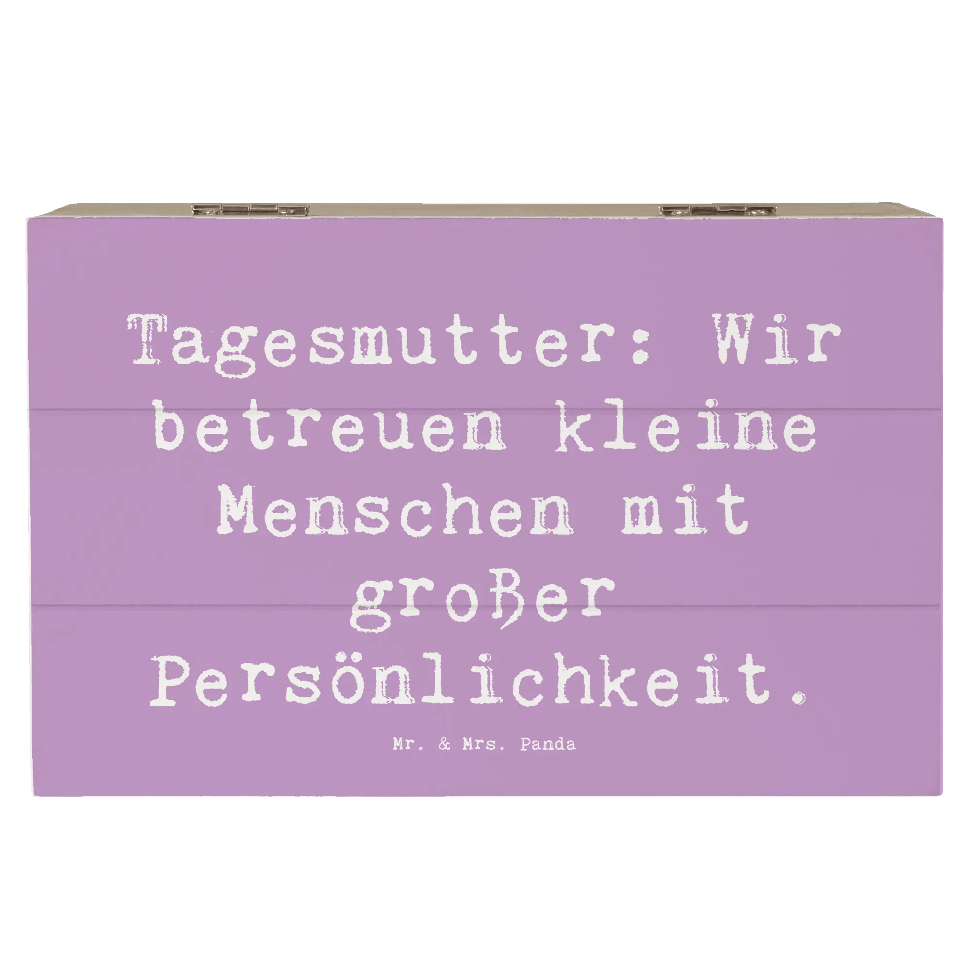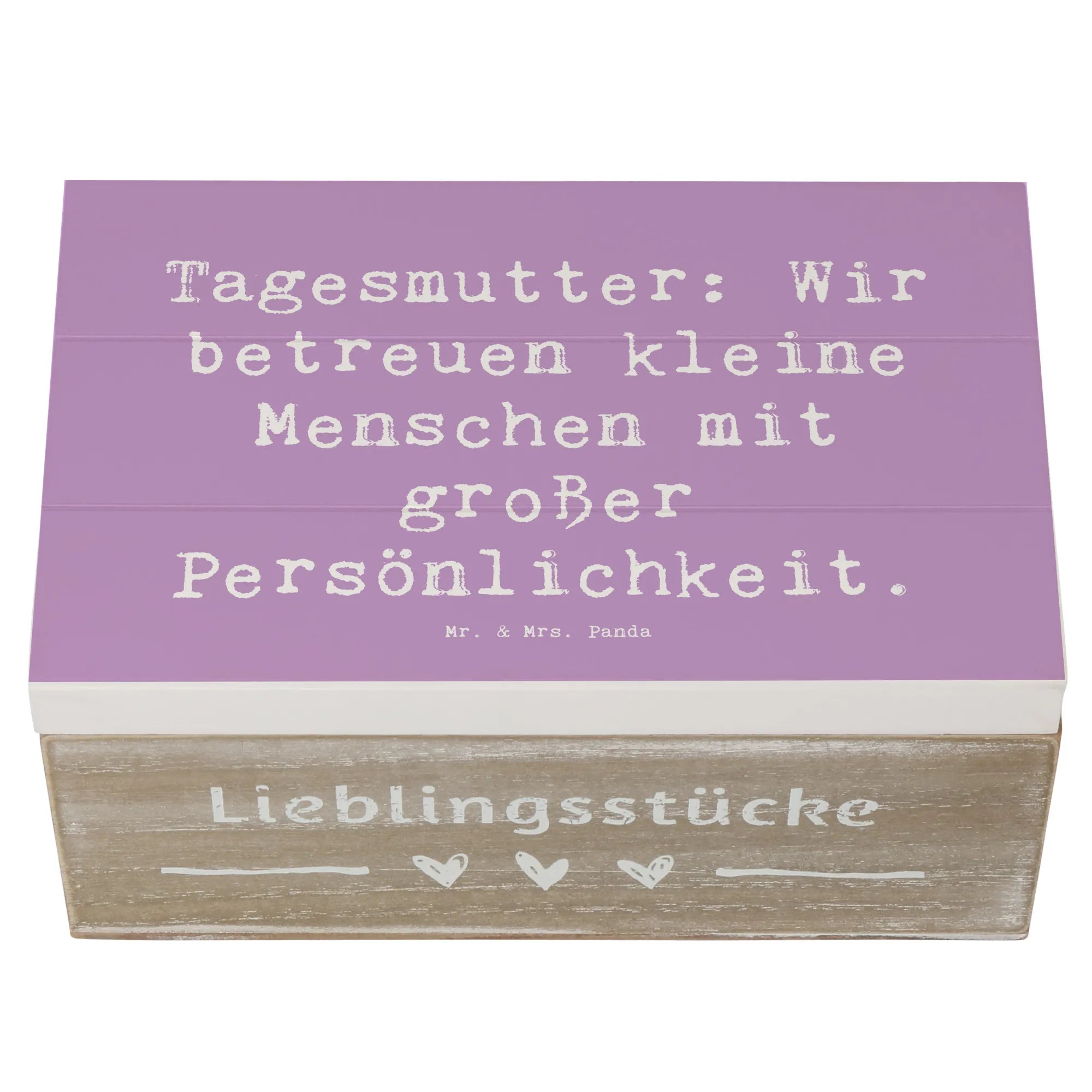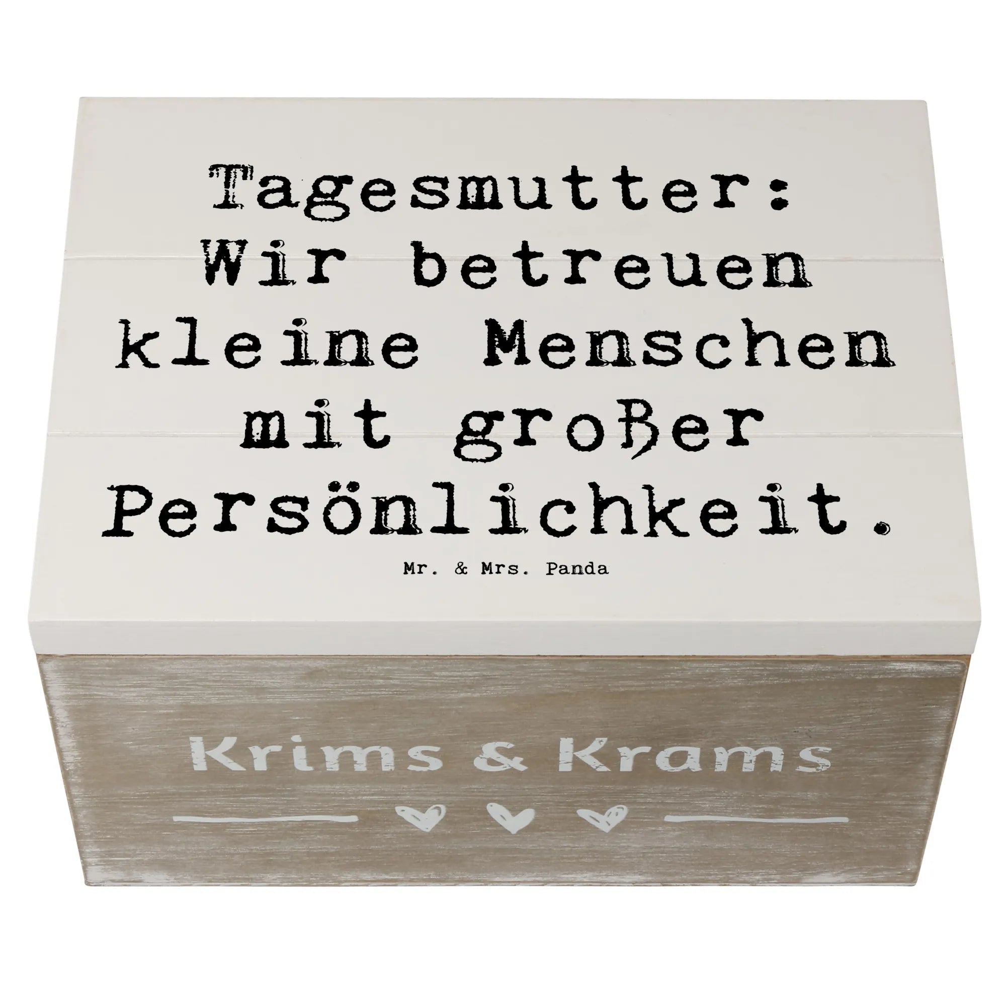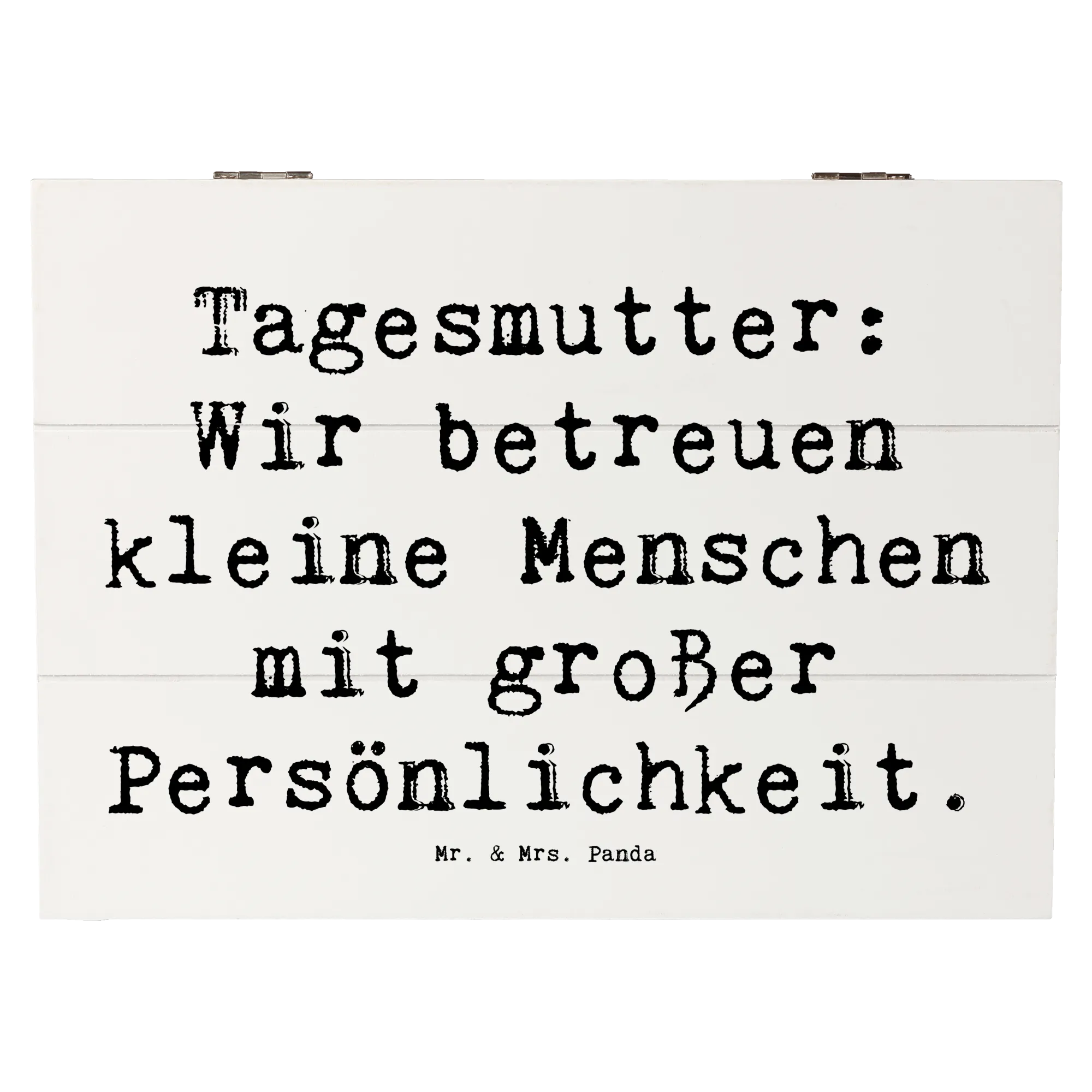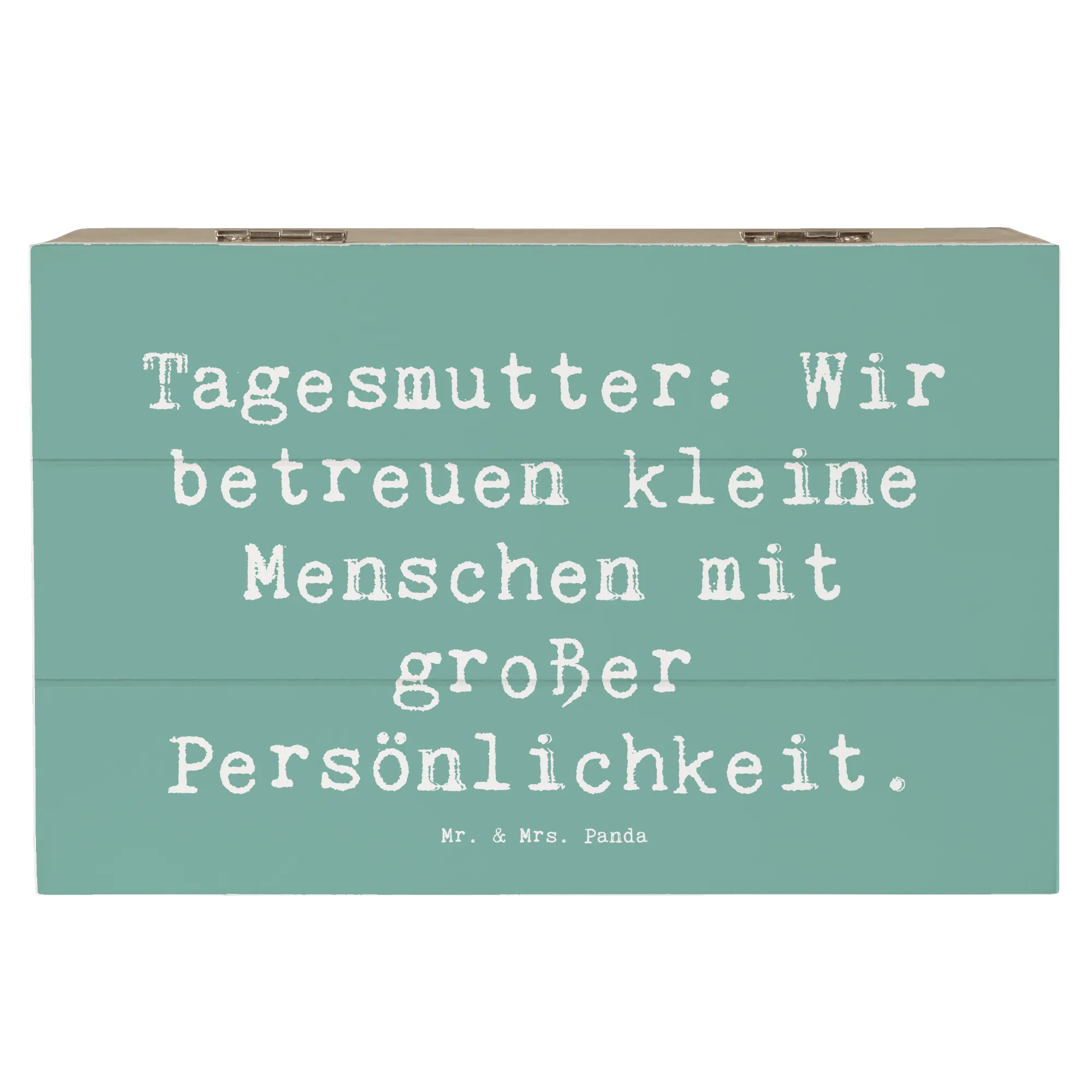 Eine wunderschöne Holzkiste von Mr. & Mrs. Panda, perfekt für die herzliche Tagesmutter in deinem Leben. Diese aus stabiler Premium Hartfaser gefertigte Erinnerungskiste bietet dir nicht nur einen stilvollen Aufbewahrungsort für die Schätze Deiner kleinen Schützlinge, sondern ist auch ein echter Hingucker in jedem Raum. Mit dem liebevollen Spruch "Tagesmutter: Wir betreuen kleine Menschen mit großer Persönlichkeit." schaffst Du eine ganz besondere Verbindung zu den kleinen Persönlichkeiten, die Du betreust.