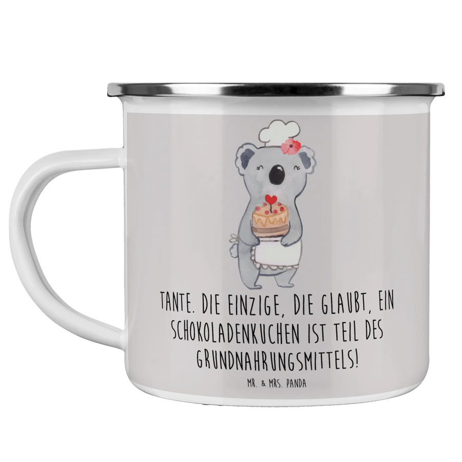 Camping Emaille Tasse Tante Schokoladenkuchen - Grau Pastell