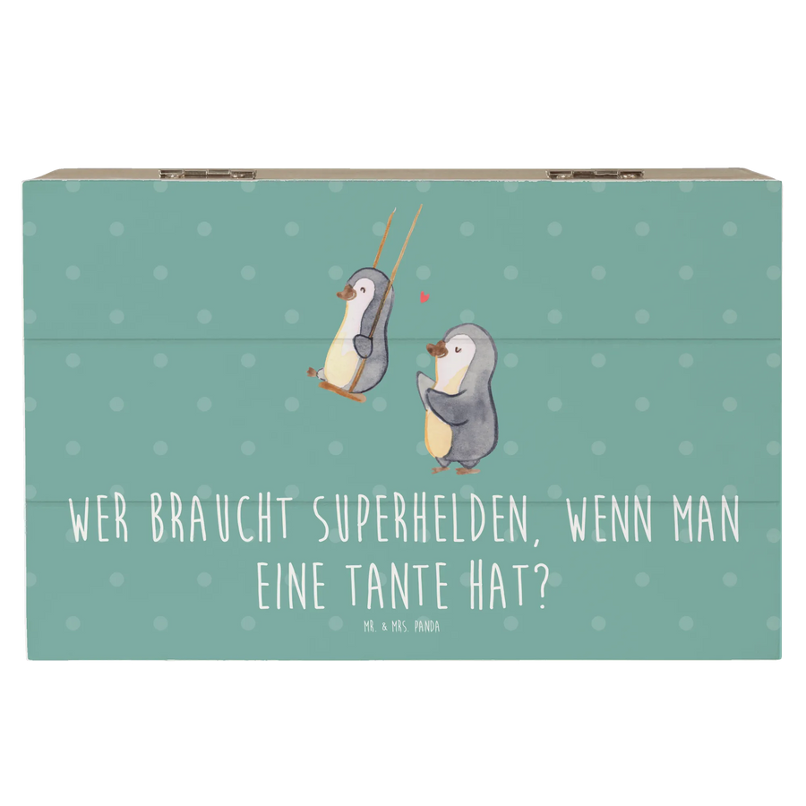 Eine wunderschöne Holzkiste von Mr. & Mrs. Panda, die zu einem ganz besonderen Geschenk für Deine Tante wird. Mit dekorativem Motiv und dem liebevollen Spruch 'Wer braucht Superhelden, wenn man eine Tante hat?' zeigt diese Kiste nicht nur Wertschätzung, sondern auch die besondere Bindung zwischen Tanten und ihren Neffen oder Nichten.