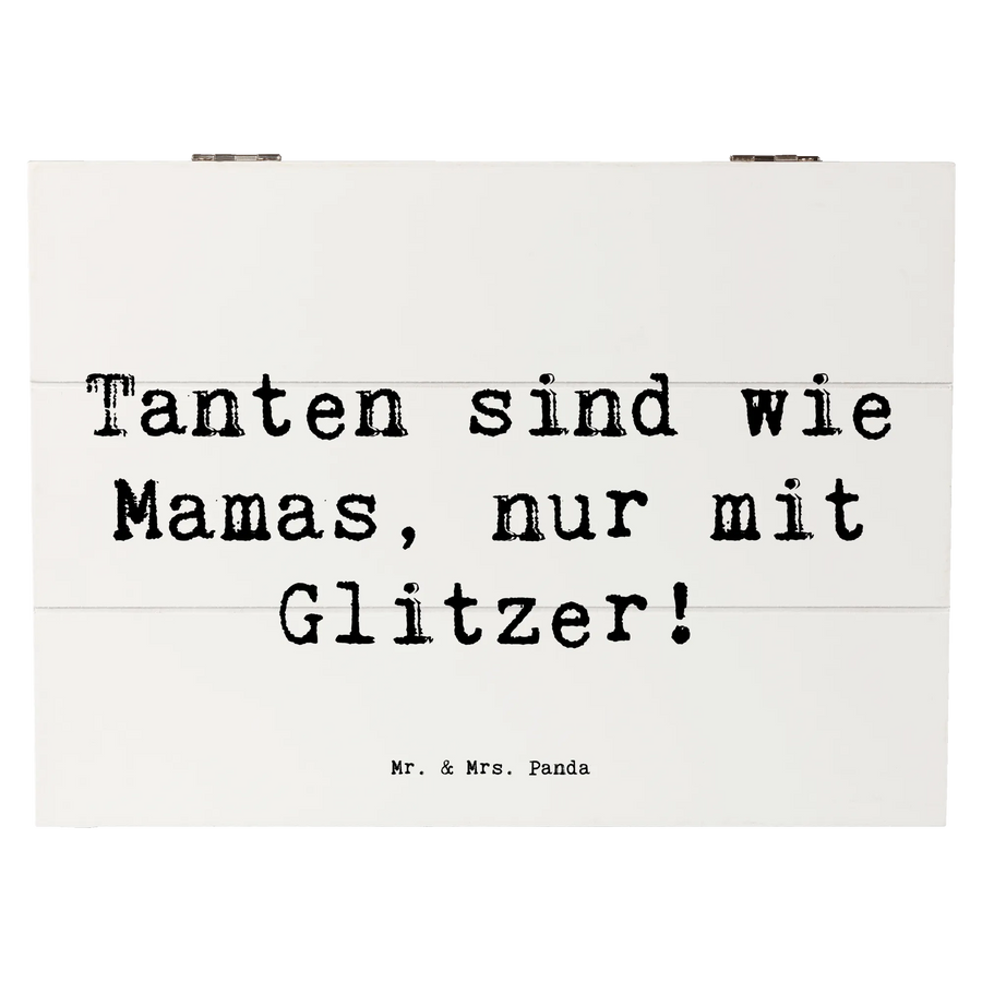 Die zauberhafte Holzkiste mit dem Motto "Tanten sind wie Mamas, nur mit Glitzer!" von Mr. & Mrs. Panda ist der perfekte Ort, um all deine wertvollen Schätze zu bewahren. Egal, ob es sich um Fotos von den schönsten Erinnerungen, Kunstwerke der Kinder oder kleine Andenken handelt – diese wunderschöne Erinnerungskiste wird schnell zu einem unverzichtbaren Begleiter in deinem Zuhause.
