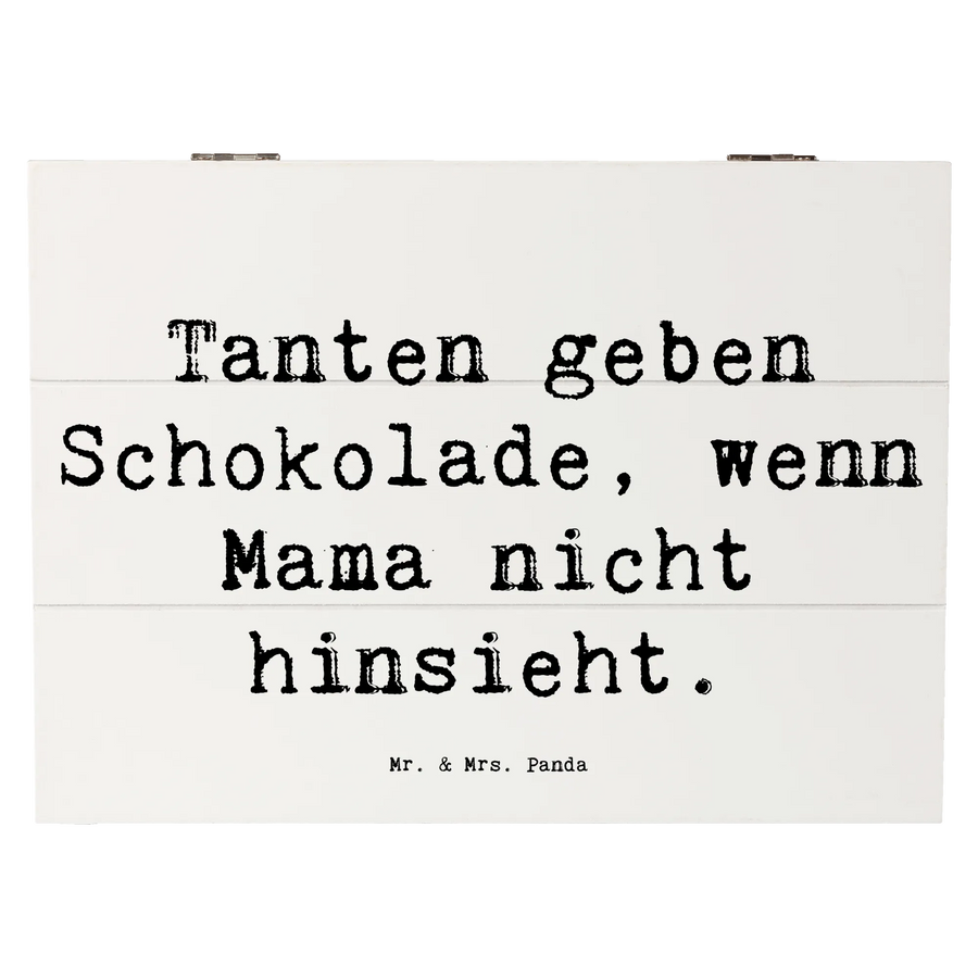 Holzkiste Spruch Tanten geben Schokolade, wenn Mama nicht hinsieht. - 25 x 18 cm - Weiß