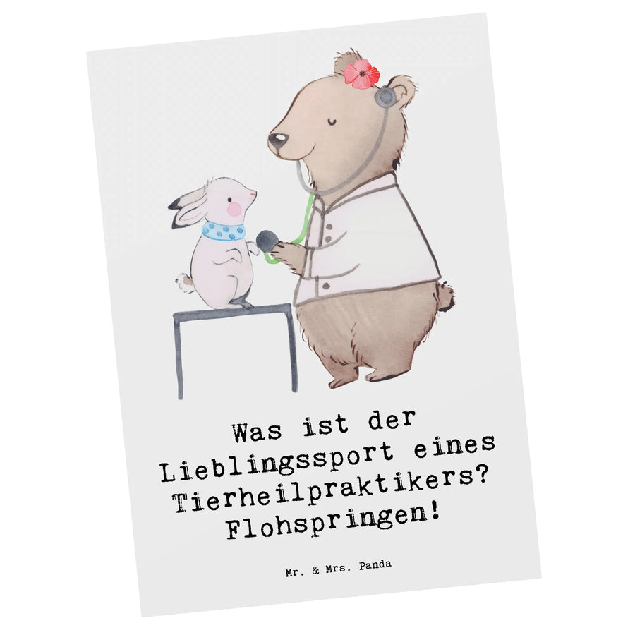 Postkarte Was ist der Lieblingssport eines Tierheilpraktikers? Flohspringen! - Weiß