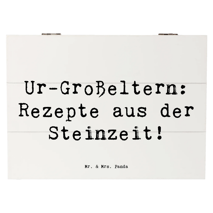 Die wunderschöne Holzkiste von Mr. & Mrs. Panda, bedruckt mit dem charmanten Motiv "Ur-Großeltern: Rezepte aus der Steinzeit!", ist das perfekte Geschenk für alle, die ihre Familientraditionen und Erinnerungen liebevoll aufbewahren möchten. Mit ihren Maßen von 180 mm x 250 mm x 150 mm bietet sie ausreichend Platz für die wertvollsten Schätze, sei es für Fotos, Kindheitserinnerungen oder andere familiäre Kostbarkeiten.
