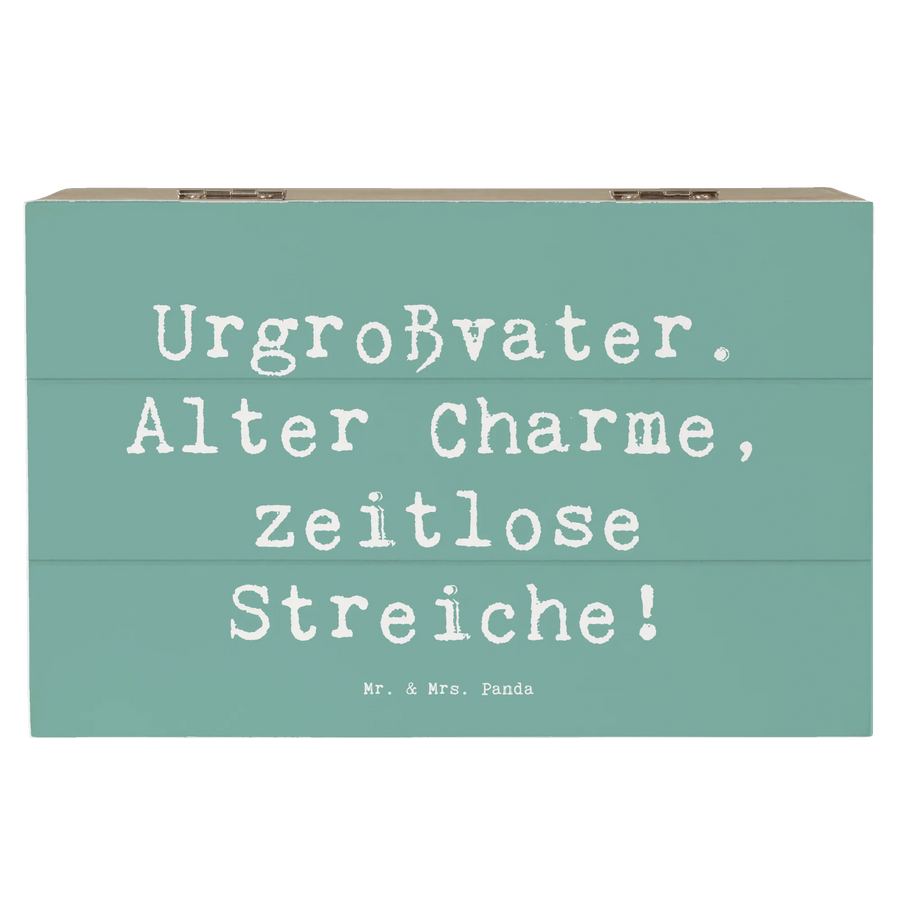 Die wunderschöne Holzkiste von Mr. & Mrs. Panda, bedruckt mit dem Motiv "Urgroßvater. Alter Charme, zeitlose Streiche!", ist das perfekte Geschenk für alle, die eine besondere Verbindung zu ihren Familienmitgliedern schätzen.