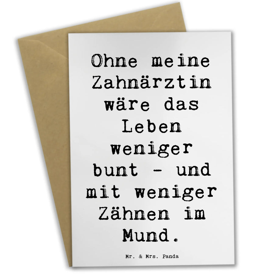 Die wunderschöne Grußkarte "Ohne meine Zahnärztin wäre das Leben weniger bunt - und mit weniger Zähnen im Mund." von Mr. & Mrs. Panda ist die perfekte Wahl, um Wertschätzung und Freude in einem liebevollen Design auszudrücken. Diese Karte gehört zur kreativen Kollektion der Berufe, die für jeden Anlass geeignet ist. Ob zum Geburtstag, als Einladung oder einfach für einen herzlichen Gruß – sie passt immer!