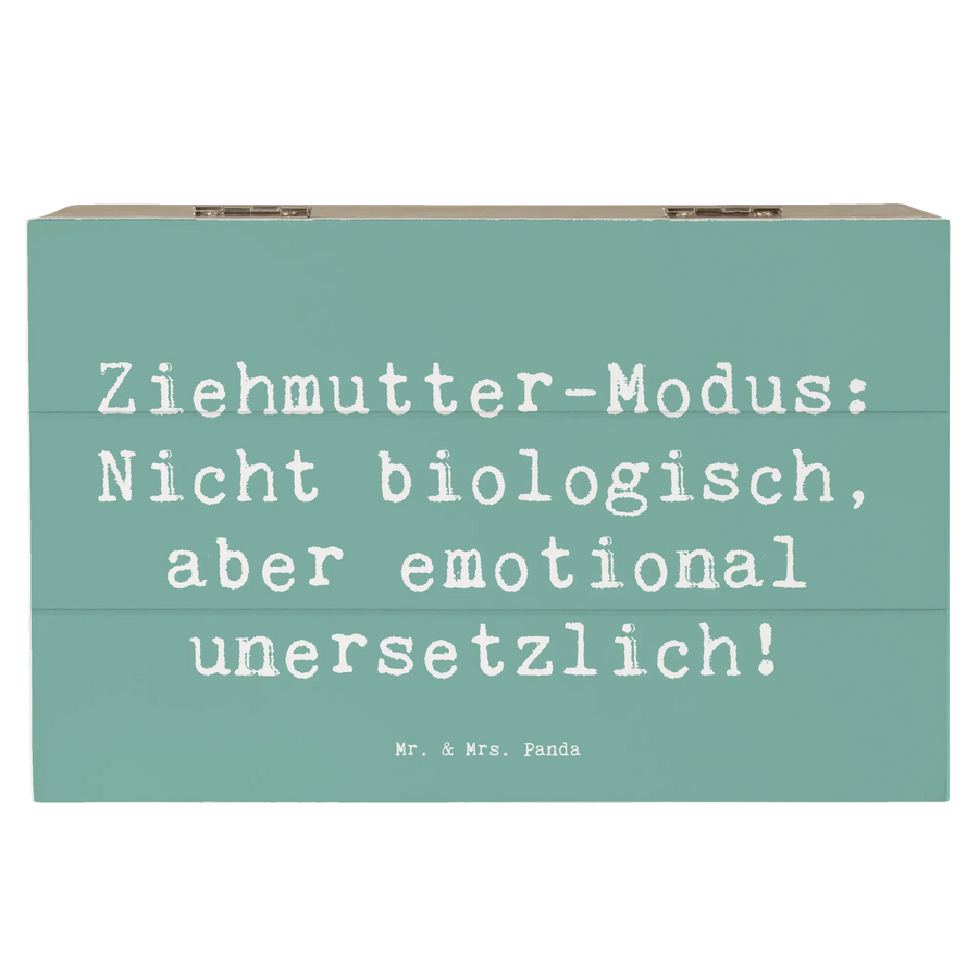 Du suchst nach dem perfekten Geschenk für die Ziehmutter, die in deinem Leben eine besondere Rolle spielt? Unsere wunderschöne Holzkiste von Mr. & Mrs. Panda ist genau das richtige Geschenk, um Dankbarkeit und Wertschätzung für diese einzigartige Frau auszudrücken. Mit dem Spruch "Ziehmutter-Modus: Nicht biologisch, aber emotional unersetzlich!" wird diese Erinnerungskiste zu einem ganz besonderen Aufbewahrungsort für kostbare Schätze und Erinnerungen. Egal, ob du sie für die Aufbewahrung von Erinnerungen an die Kindheit, Fotos, Briefe oder kleine Geschenke nutzen möchtest – die praktische Kiste bietet ausreichend Platz und einen stabilen Halt.