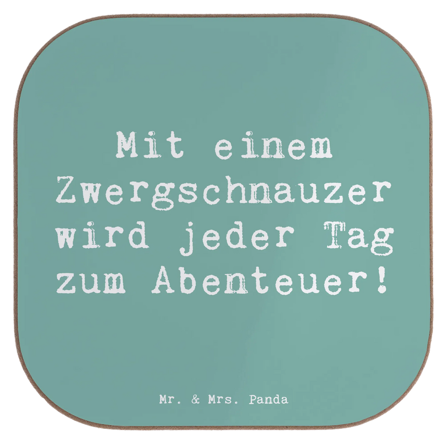 Ein niedlicher Zwergschnauzer für deinen Tisch 🐾 – Unser quadratischer Untersetzer aus der Mr. & Mrs. Panda Hunderassen-Kollektion bringt Freude, Schutz und Stil in dein Zuhause. Der liebevolle Spruch „Mit einem Zwergschnauzer wird jeder Tag zum Abenteuer!“ macht diesen Glasuntersetzer zum perfekten Geschenk für alle Zwergschnauzer-Fans und Hundefreunde.