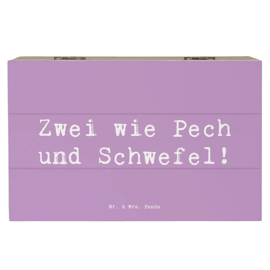 Mit dem Aufdruck "Zwei wie Pech und Schwefel!" erinnert die Kiste an die einzigartige Beziehung zwischen Geschwistern. Sie können ihre Schätze wie Fotos, kleine Spielzeuge oder gemeinsame Erinnerungen stilvoll aufbewahren.