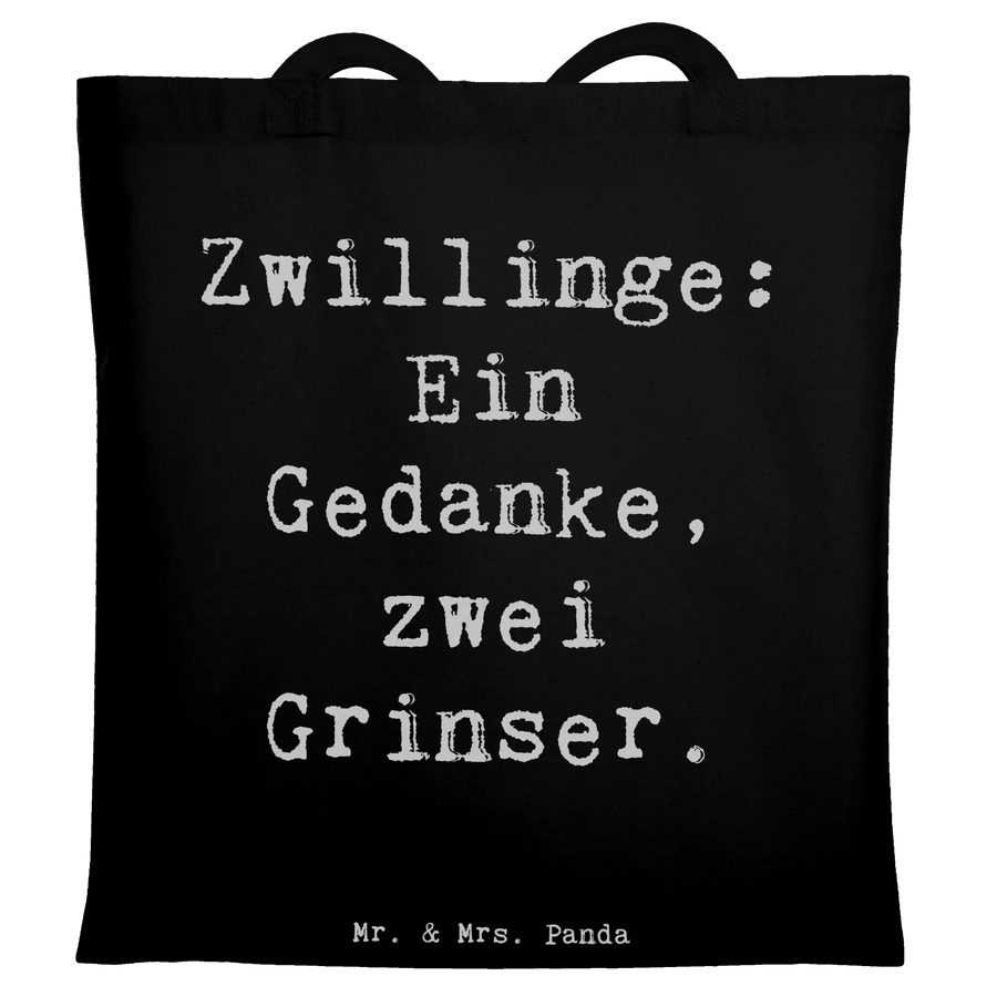 Tragetasche Spruch Zwillingsgeschwister Grinser - Schwarz